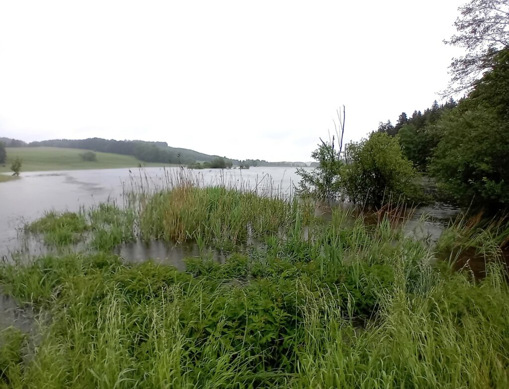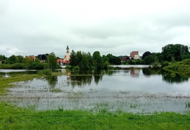 Kißlegg – Das letzte Mal hatte es im Kißleggischen vor genau 30 Jahren, 1994, ein ähnlich hohes, jedoch etwas kleineres Hochwasser an der Wolfegger Ach gegeben. Der Autor erinnert sich noch sehr lebhaft an seine Kindheit in Rempertshofen und die Überschwemmungen unterhalb der Ortschaft östlich und westlich der Wolfegger Ach (lokal auch Moosbach genannt), die dort aus dem Gründlenried strömt. Es hatte damals etwas weniger Wasser, wie beim diesjährigen Hochwasser. Trotzdem konnte man in den Überschwemmungsflächen baden gehen, was der Autor mit seinen Geschwistern tat.