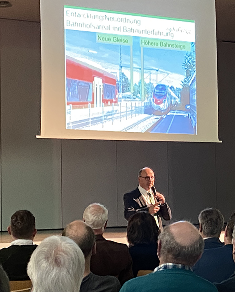 Wie sich Kisslegg künftig entwickeln kann, dazu gewährte Krattenmacher beim Bürgerabend am Freitag viele Einblicke. So äußerte er sich auch zur Entwicklung des Bahnhofes (Bild). Auch hier kann er positive Signale erkennen.