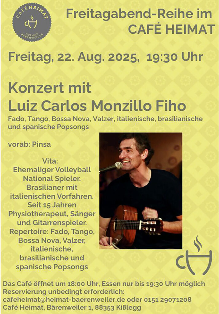 Im Moment hat das Café Betriebsferien – ab Freitag, 22. August, ist wieder geöffnet. Dann startet man gleich mit einem brasilianischen Abend (siehe nachstehendes Plakat).