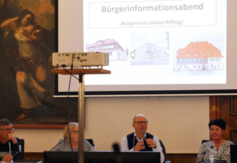 Kißlegg – „Was machen wir, wenn das Gebäude fertig ist?“ – unter dieser Leitfrage versammelten sich am vergangenen Montag, 20. Oktober, rund 60 Bürger im Cäsarsaal des Neuen Schlosses in Kißlegg. Im Treppenaufgang grüßten die Sybillen mit ihrem krytischem Lächeln, das die Besucher über die Zukunft rätseln. Die Zukunft des Löwen aber zeichnet sich klar ab. Und sie ist vielversprechend.