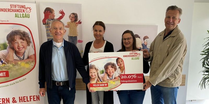 Leutkirch / Bad Wurzach / Isny / Kißlegg – Chancengerechtigkeit für Kinder und Jugendliche ist Gold wert – davon ist die Stiftung Kinderchancen Allgäu überzeugt, aber nicht nur sie allein! Dank großartiger Unterstützung einiger Zahnarztpraxen sowie zahlreichen spendenbereiten Patientinnen und Patienten ist im vergangenen Jahr wieder eine stolze Summe von insgesamt 20.076 € zusammengekommen.