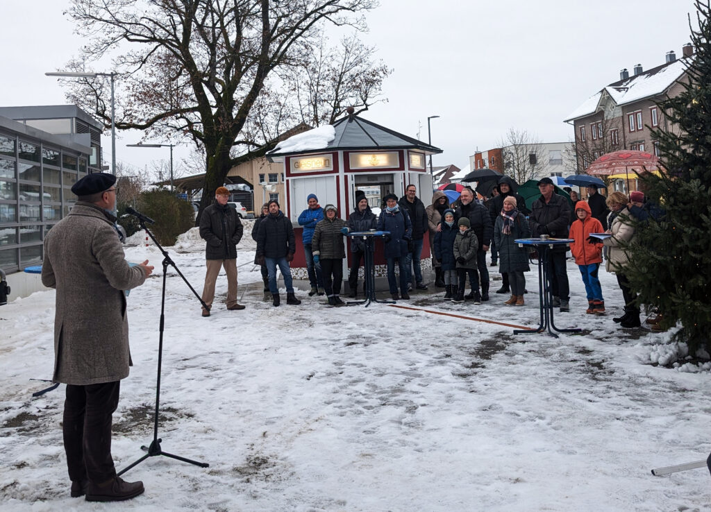 Bürgermeister Krattenmacher bei seiner Ansprache zur Wiedereröffnung der Bahnhofstraße (am 8. Dezember). Foto: Alexandra Gronmayer