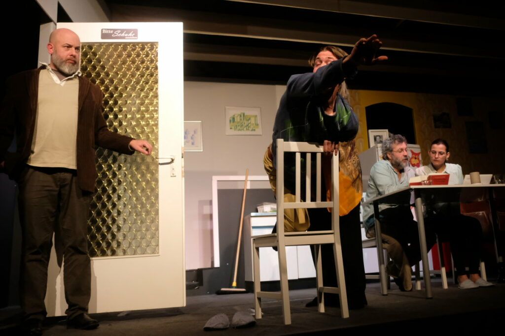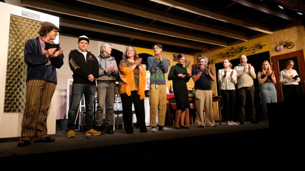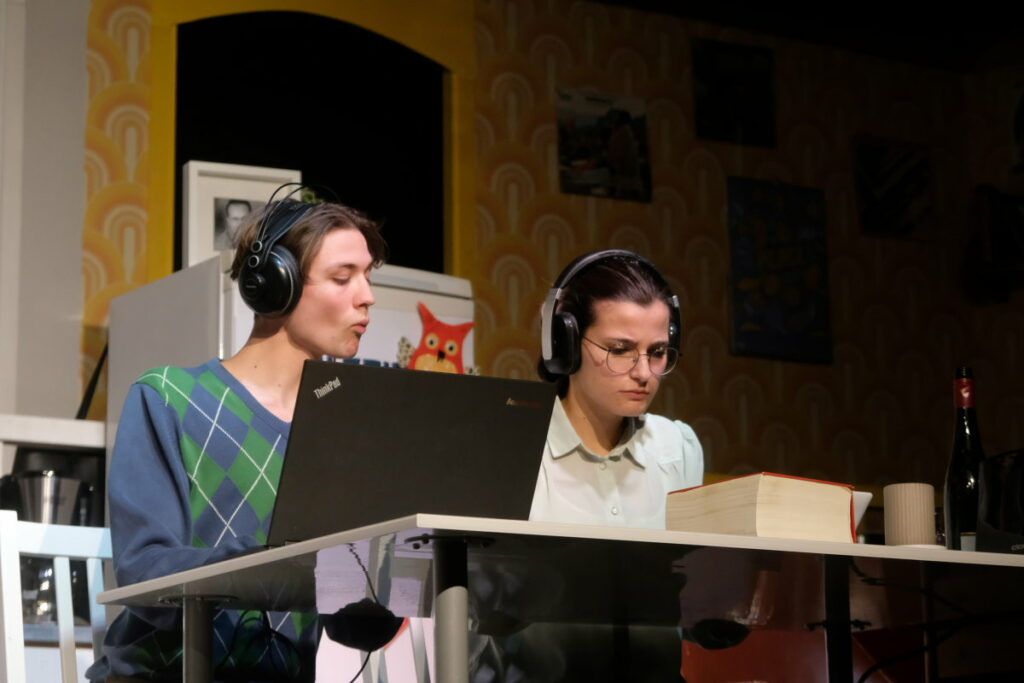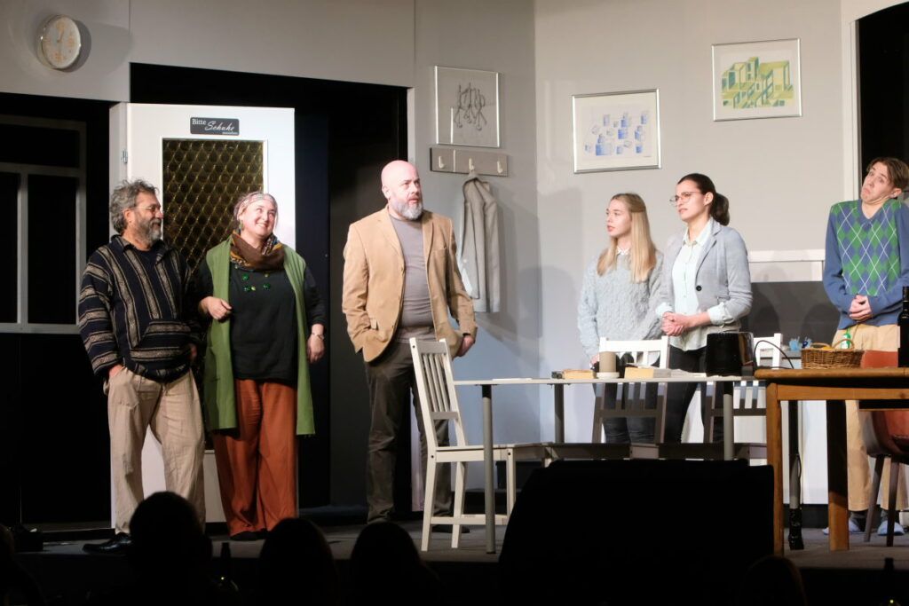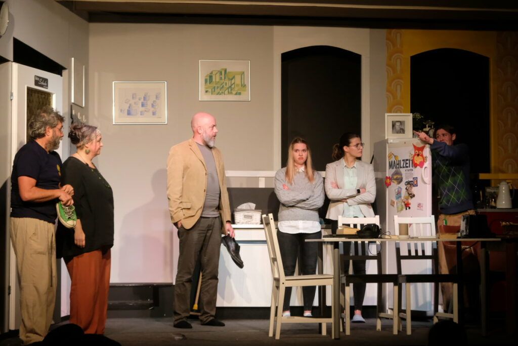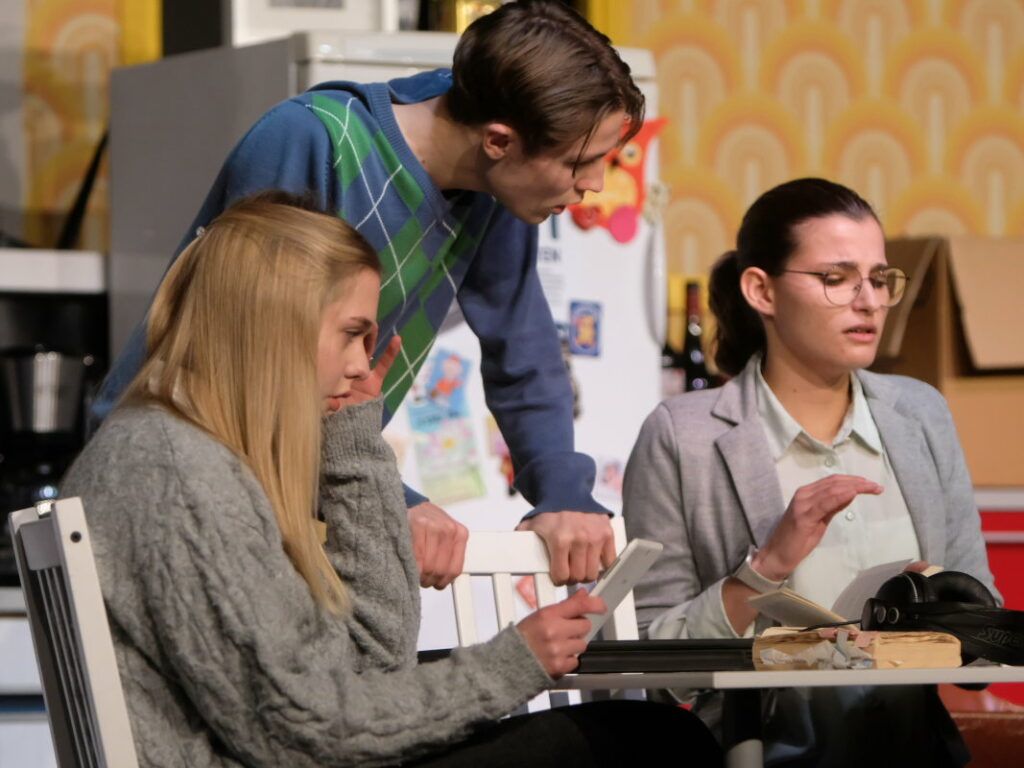 Dass das Stück absolut sehenswert inszeniert ist, zeigt bereits die Anmoderation: Leonie Oberhofer, Hannah Schwarz und Leo Halder spielen darin die Vorgänger-WG der „Neuen“, also bereits ein kleines Stück im Stück.