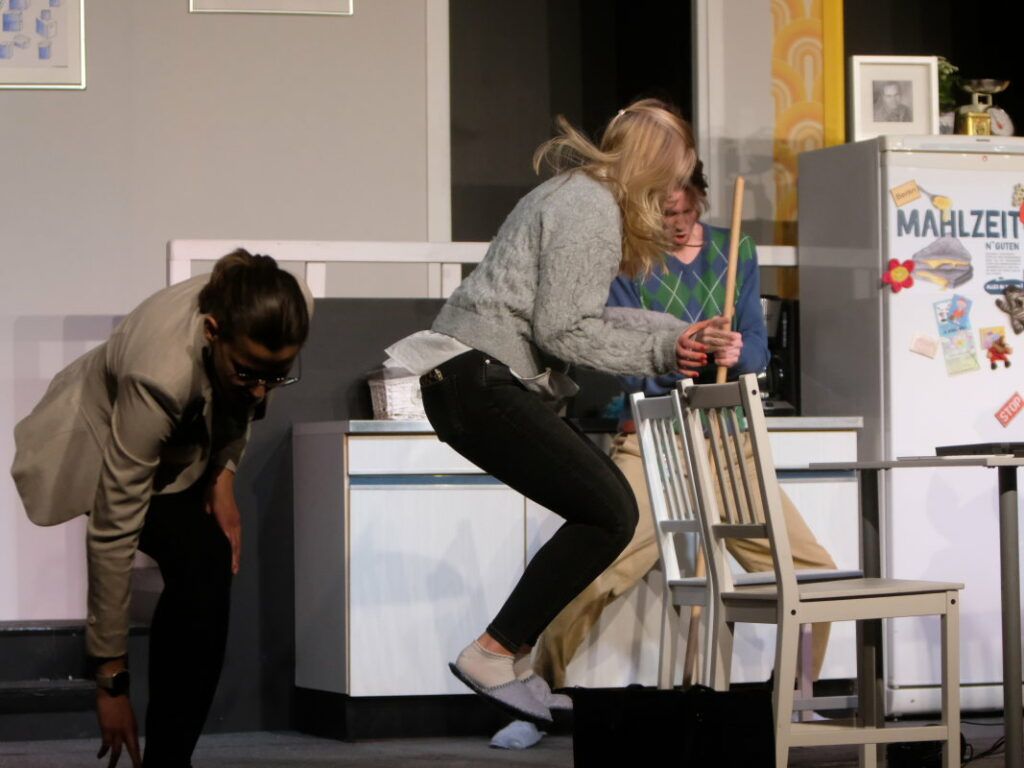 Immenried – Zum Jahreswechsel wird vom Theaterverein Immenried die Komödie „Wir sind die Neuen“ über einen ganz besonderen Generationen-Konflikt nach dem gleichnamigen Film von Ralf Westhoff in der Bühnenfassung von Jürgen Popig aufgeführt. Regie führt Sandro Droth. Premiere war am Donnerstag 26. Dezember um 20.00 Uhr in der Turn- und Festhalle Immenried. Unser Reporter Uli Gresser hat die Generalprobe besucht.