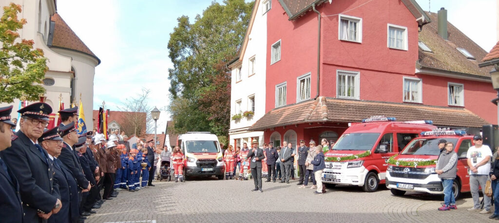 Kißlegg – Am Wochenende 21. / 22. September wurde das 160-jährige Feuerwehrjubiläum in Kißlegg gefeiert. Zu diesem Anlass wurden am Sonntagvormittag mehrere Fahrzeuge gesegnet und in Dienst gestellt. Allen voran der Vorausrüstwagen (VRW), welcher vor allem dem schnellen Einsatz und der Personenrettung dient, beispielsweise bei Verkehrsunfällen.