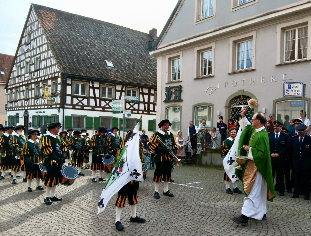 Nach dem feierlichen Gottesdienst in der Pfarrkirche mit anschließender Fahrzeugsegnung marschierte ein Festumzug unter den Klängen des Fanfarenzugs zum Feuerwehrhaus, wo anschließend der Musikverein Kißlegg mit dem neuen Dirigenten Chris Ekkelboom für gute Unterhaltung sorgte.