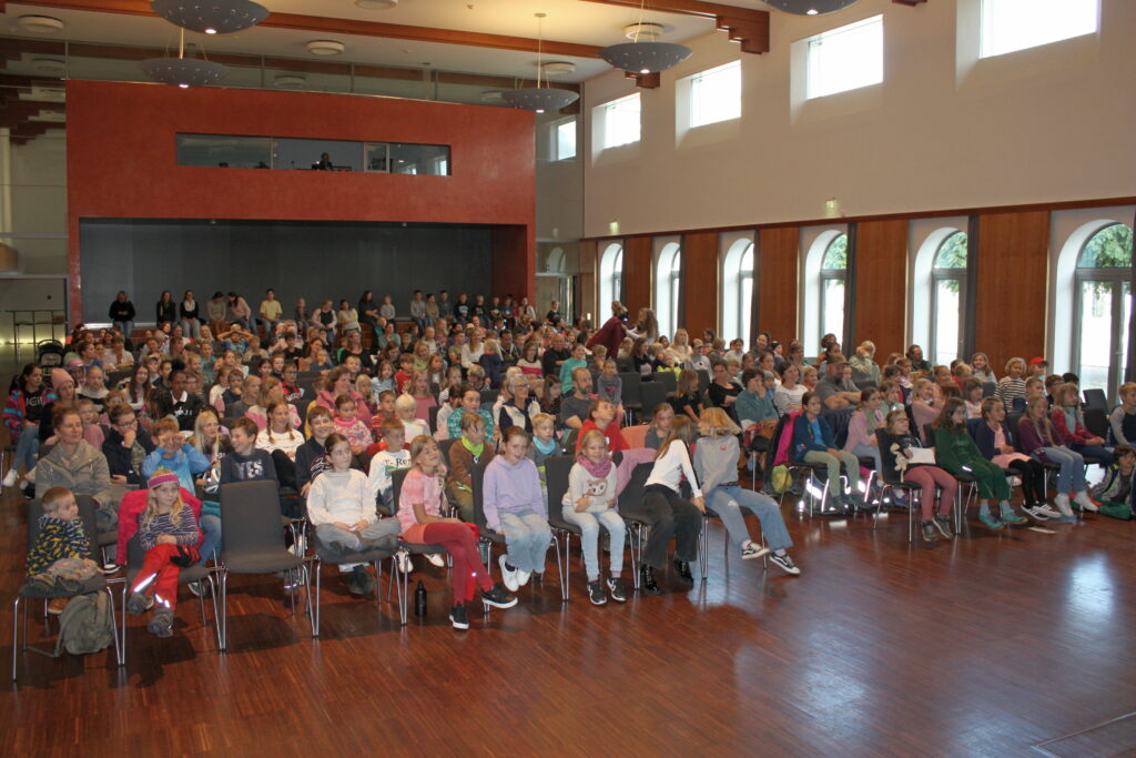 Zum Abschluss der Veranstaltung wurden die kleineren Preise, die bereits zuvor gezogen wurden, an die Kinder in der Festhalle verteilt. Jeder Teilnehmer und jede Teilnehmerin konnte sich über einen Gewinn freuen. Die Stadtbibliothek Leutkirch blickt damit auf eine äußerst erfolgreiche Heiß auf Lesen-Aktion 2024 zurück.