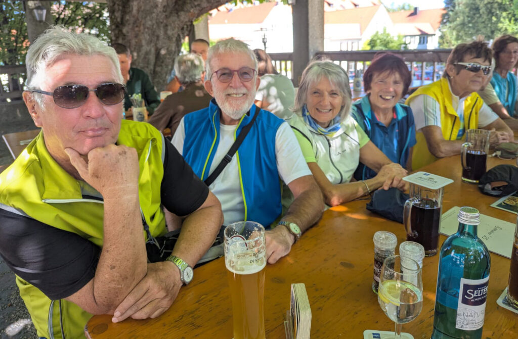 So ging es dann mit rund 30 Radbegeisterten über Ausnang-Kimratshofen-Altusried, weiter über Heiligkreuz nach Kempten hinein. Die Gruppe verhielt sich sehr diszipliniert und so erreichte man gefahrlos das Mittagsziel: Den Brauereigasthof „Stift“ in Kempten, wo man im Biergarten Speis und Trank genießen konnte. Gleich daneben hatte man den Blick auf die mächtige Lorenz-Kirche.