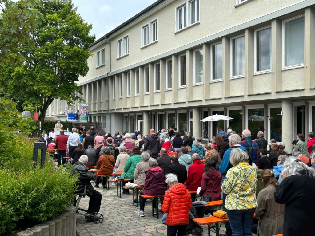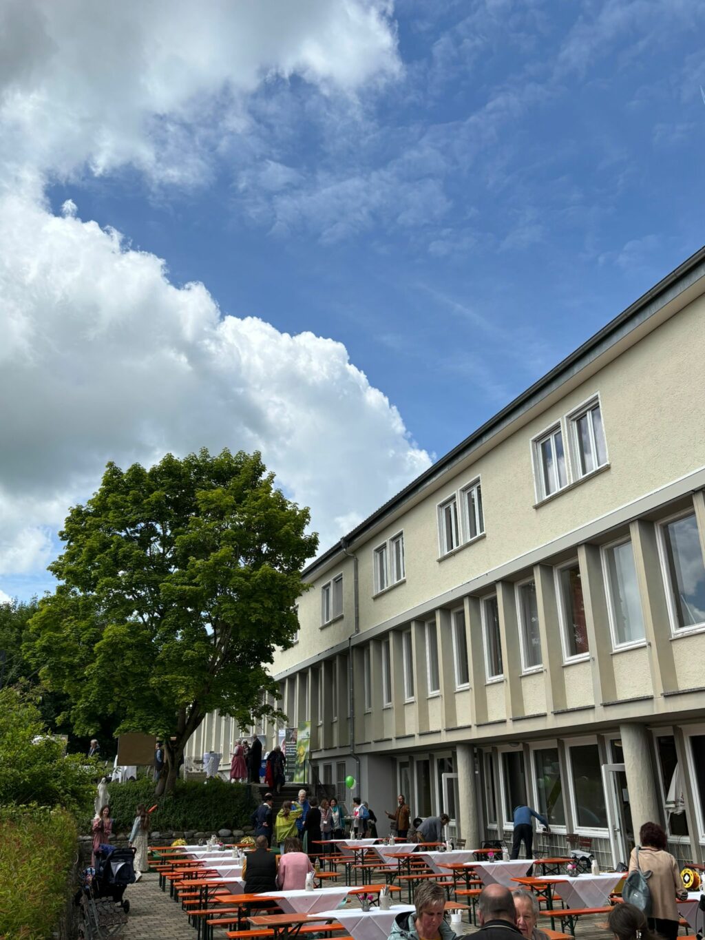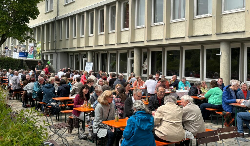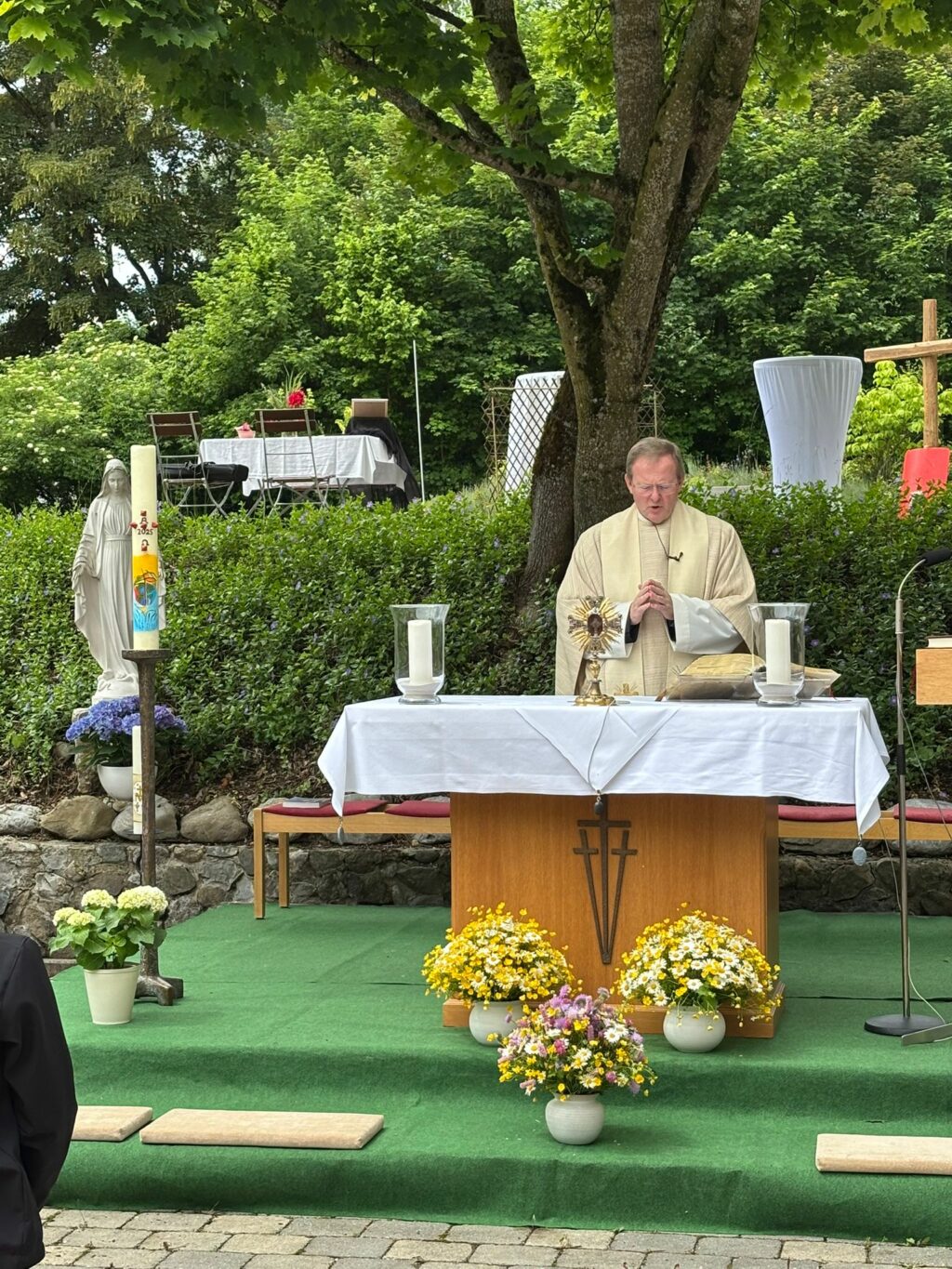 Leutkirch – Das Frühlingsfest an Christi Himmelfahrt hat im Haus Regina Pacis schon Tradition. Vor zwei Jahren konnte man 25 Jahre Eigenbetrieb und 20 Jahre Ort Heilender Begegnung mit einem Open-Air-Fest feiern, dieses Jahr war das Ehrenamtsfest und der „Markt der Möglichkeiten“ mit Infoständen und Führungen integriert. Hunderte kamen, feierten die Festmesse mit, genossen das leckere Mittagessen, Kaffee und Kuchen. Am Nachmittag informierten sich viele über die Angebote im Haus und beim „Ort Heilender Begegnung“.