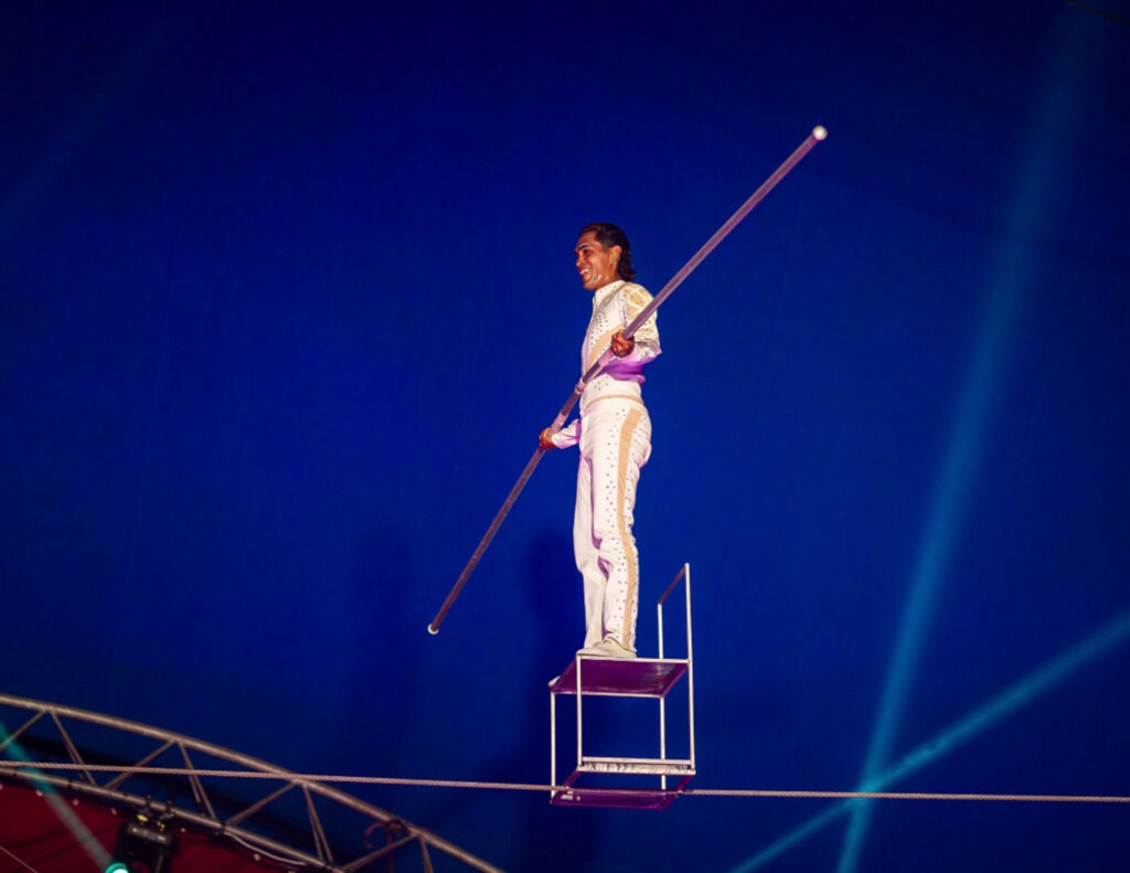 „Für die diesjährige Tournee haben wir extra die in ganz Südamerika bekannte Hochseil-Truppe ,Marin-Family‘ aus Kolumbien einfliegen lassen“, schwärmt Zirkusdirektor Markus Kaiser. „Was diese Familie zeigt, ist einfach Wahnsinn. Ich würde sagen, die sind einfach nur bekloppt“, sagt Kaiser anerkennend-staunend. In neun Metern Höhe begeistern die beiden wagenmutigen Künstler auf einem nur vier Zentimeter dicken Stahlseil mit spektakulären Tricks. „Das muss man einfach live erlebt haben“, so der Zirkus-Chef.