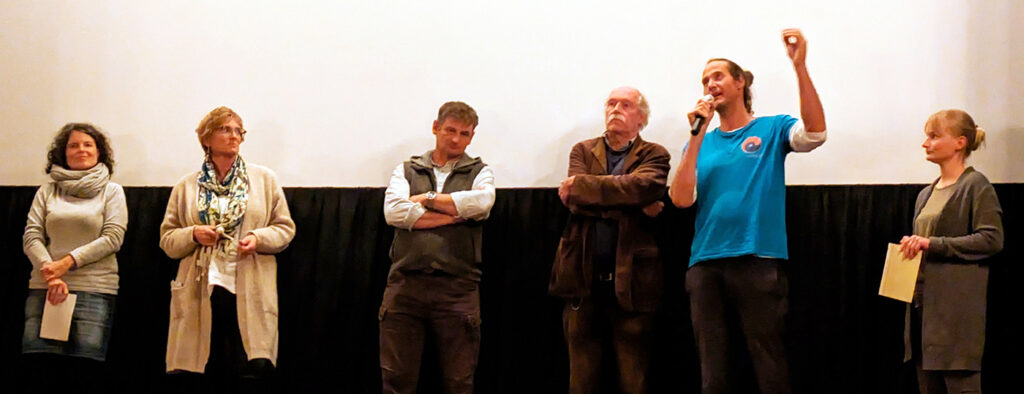 Zum guten Schluss machte Katharina Eckel auf der Kino-Bühne auf die “Biomusterregion” aufmerksam. Sie breitet sich im Kreis Ravensburg aus. In den zurückliegenden “Öko-Aktionswochen” wurden Besuchen auf Biohöfen angeboten. Und zu Weihnachten empfiehlt sie Bio-Geschenke. Schon jetzt dort zu haben: Einkaufsführer. Mehr Informationen hierzu: Bio-Musterregion | Landkreis Ravensburg | Landkreis Ravensburg (rv.de)