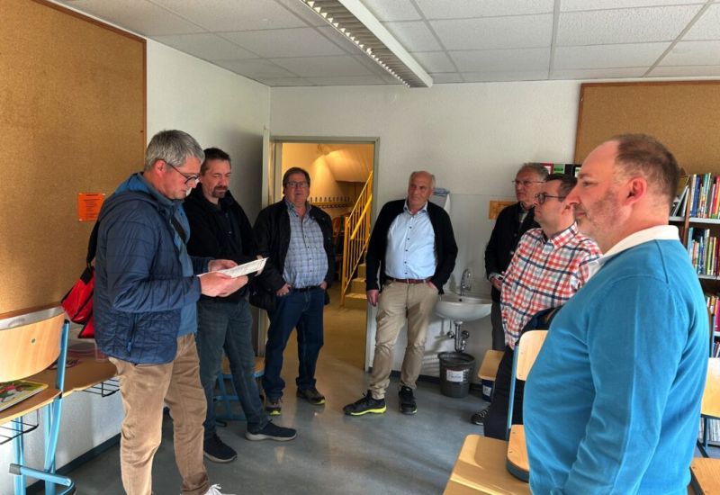 Ortstermin Friesenhofen: Die Kandidaten der CDU lassen sich erklären, was anliegt in der Ortschaft und wo der Schuh drückt. Es wuselt in der Ebnathalle in Friesenhofen: Junge Frauen und viele Kinder bereiten an diesem Freitag, 26. April, den Kinderkleiderbazar vor. „So voll ist es bei uns immer“, erklärt Ortsvorsteher Christian Merk. Sportveranstaltungen, Feste, Turniere, „die Halle ist immer voll belegt“. Ein klares Zeichen einer lebendigen Ortsgemeinschaft. Die Bewerber um die Leutkircher Gemeinderatssitze zeigten sich beeindruckt von der Präsentation vor Ort.