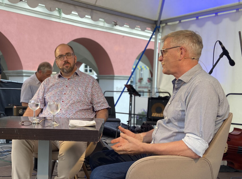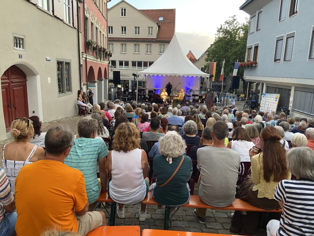 Nach einer lauschigen Pause mit der swing-vollen Musik von „Just Friends” fragte Karl Anton Maucher den Mathematikprofessor Cordian Riener, was so schön sei an Leutkirch. Dort war der gebürtige Memminger, aufgewachsen. Heute lehrt er in der nördlichsten Universität Norwegens. Rieners Antwort: „Es gibt immer noch viel Engagement.” An der Allgäuer Bevölkerung schätzt er ihr „direktes Zugehen auf Leute”. Außerdem hatte Riener bei Hedwig Seidel-Lerch an der Grundschule Oberer Graben gelernt, das drei mal acht 24 und nicht 25 ergibt.