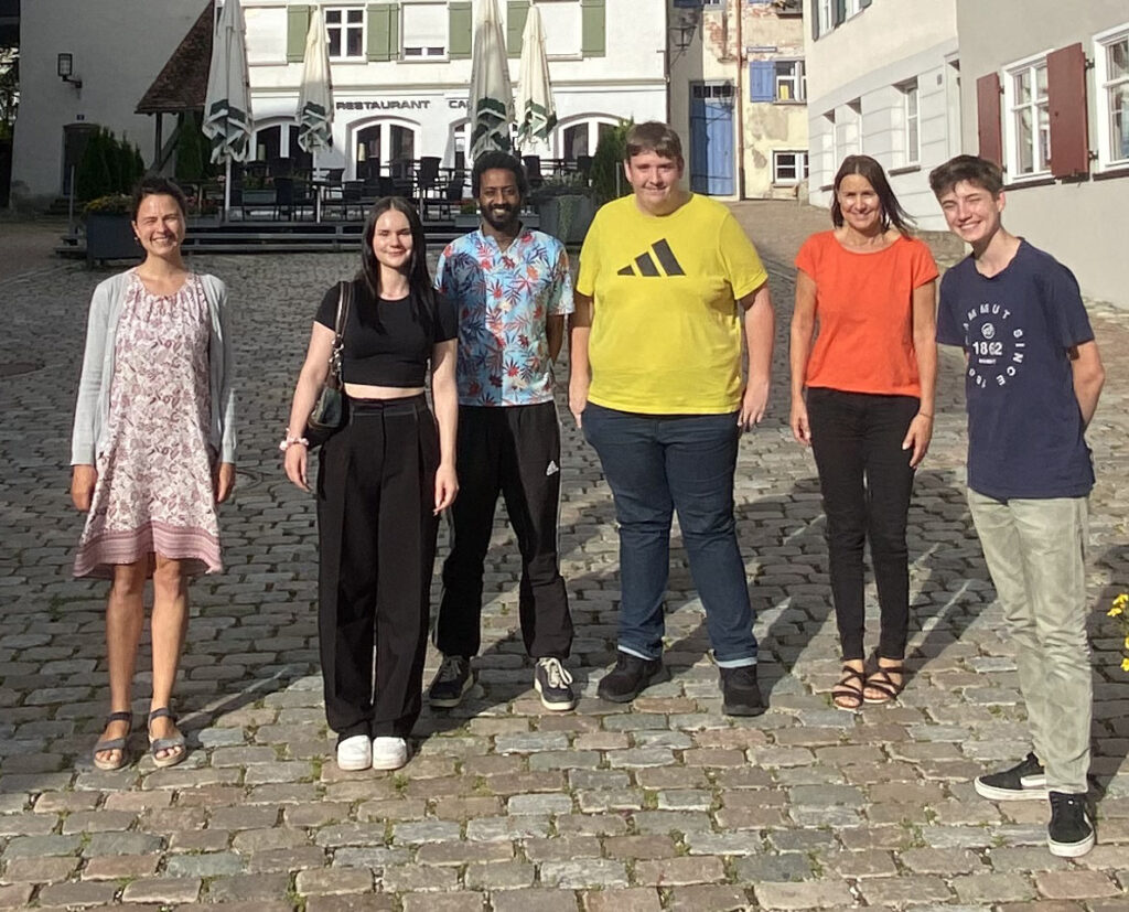 Jugend-Gemeinderatsaktive am 23. Juli auf dem Gänsbühl Leutkirch (von links): Maria Hönig von „Demokratie leben!”, Melissa Altergott (stellvertretende Vorsitzende), Wdebat Arazar vom Jugendhaus, Luis Kistler, Carmen Scheich (Stadt) und Constantin Künst (neuer Vorsitzender).