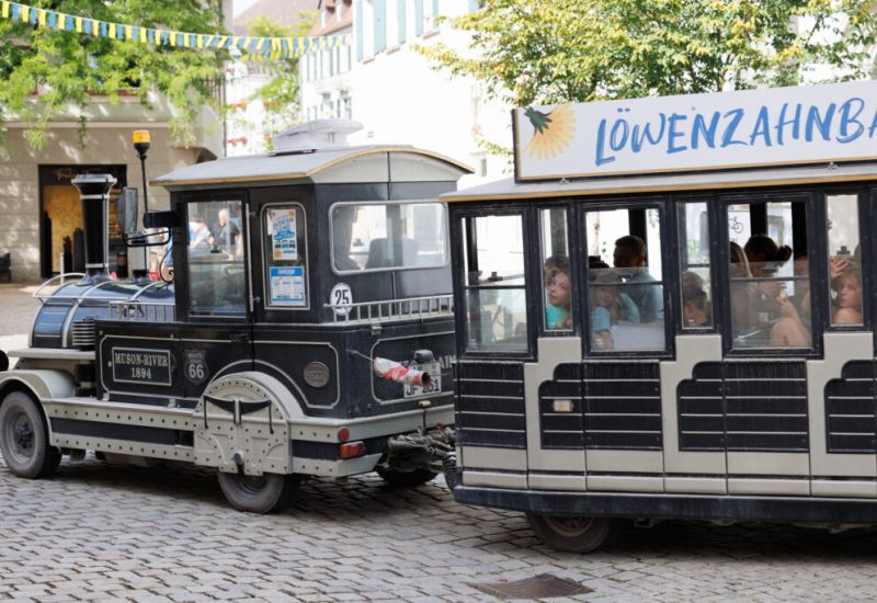 Das Löwenzahnbähnle wird vom 11. Juni bis zum 16. August – immer von Mittwoch bis Samstag – zwischen Center Parcs Park Allgäu und der Leutkircher Altstadt pendeln.