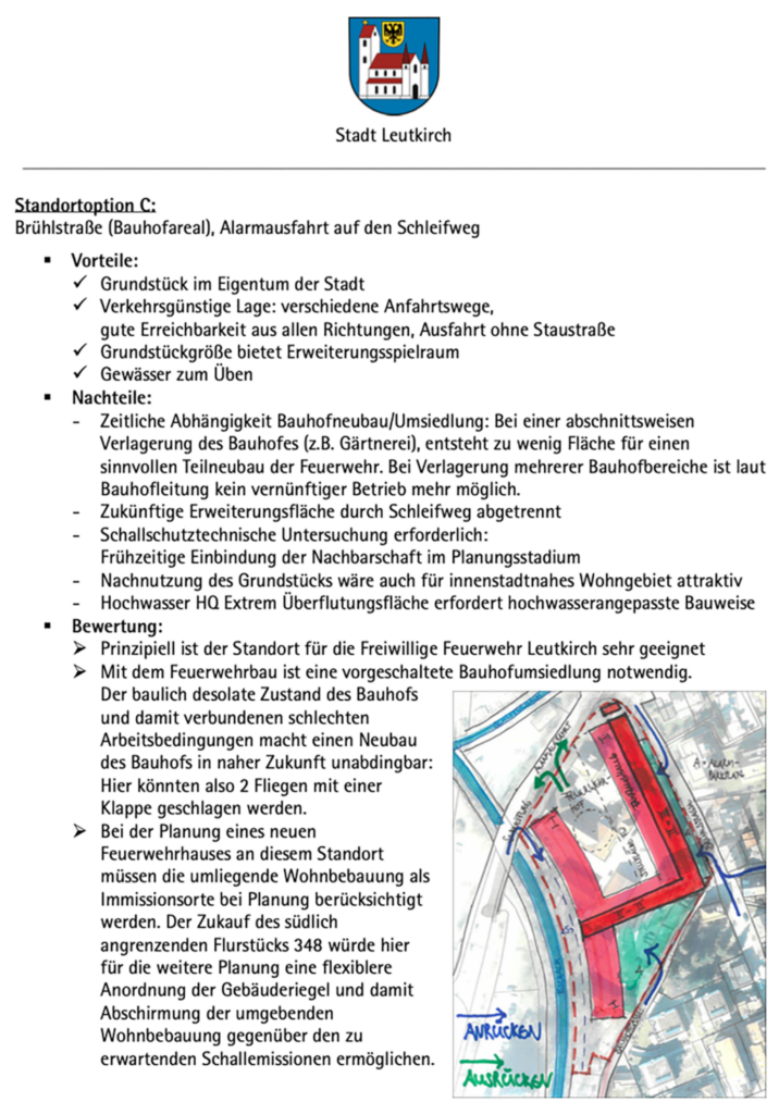 Die Erreichbarkeitsstudien zu vier untersuchten Standorten – einer davon am Krankenhaus Leutkirch – hat als Ergebnis: Der Bauhof ist der einzige gute Standort zum Einhalten der Eintreffzeiten. Genau dies hatten mehrere Feuerwehrleute dem Berichterstatter schon vor der Behandlung von TOP 6 gesagt. Ein Beweis, wie gesunder Menschenverstand und Gutachten übereinstimmen.