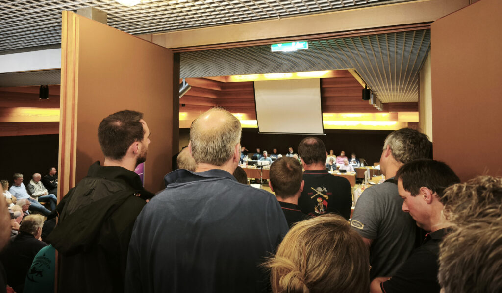 Leutkirch – Das Interesse an der Gemeinderatssitzung am Montagabend (28.7.) war enorm. Genauer gesagt: an Punkt 6. Unter diesem Tagesordnungspunkt sollte entschieden werden, wohin das neue Feuerwehrhaus kommt. Etliche Leutkircher Feuerwehrabteilungen waren im Dienstanzug und mit Mannschaftswagen angerückt. Schon im Treppenhaus war kein Durchkommen mehr zum Sitzungssaal. (Besucher Hansjörg Veser ist unverrichteterdinge wieder gegangen.) Die Trauben von Feuerwehrmitgliedern konnten akustisch kaum folgen, dennoch warteten sie mit viel Geduld auf „ihren“ TOP 6: Neubau Feuerwehrhaus.