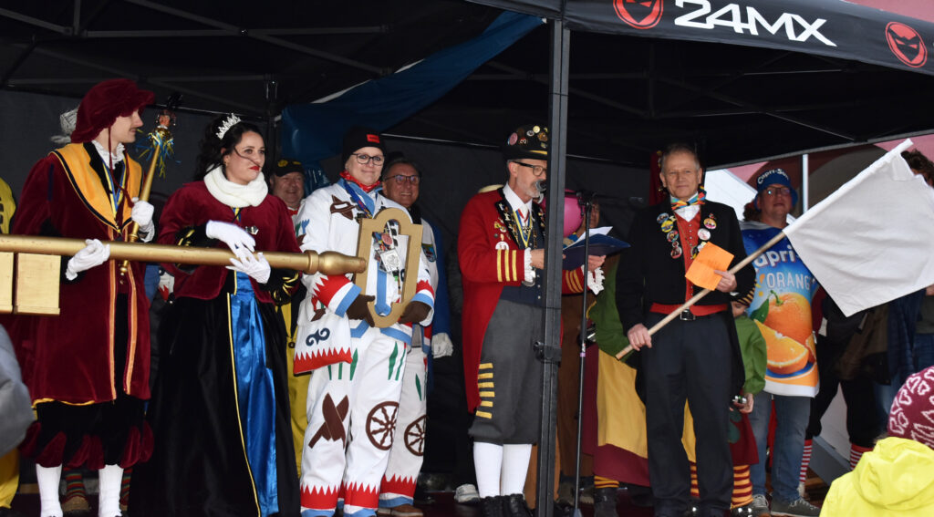 Das wichtigste Symbol der Macht, der Rathaus-Schlüssel, liegt in Händen der Narren.