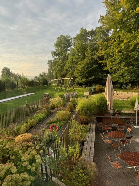 Außerdem lädt das nahe Eschach-Ufer direkt am Gartenrand zum Ausruhen. Oder auch zum Hinschauen für Kunst-Beflissene. Damit nicht genug, lockt in direkter Nachbarschaft ein Laden mit Kinderkleidung, Naturkosmetik und Kerzen. Und selbst „Mystery package”-Begeisterte entdecken nahe des “Rössles” den passenden Automaten ebenso wie einen Automaten mit Bio-Produkten der Käsküche Isny.