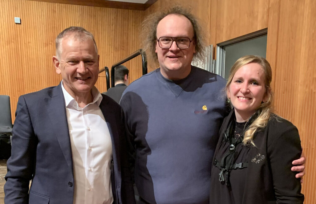 OB Henle freute sich sehr über den Leutkirch-Film und über das hochklassige Konzert. Diese Aufnahme mit dem Ehepaar Wolf entstand nach dem Konzert.