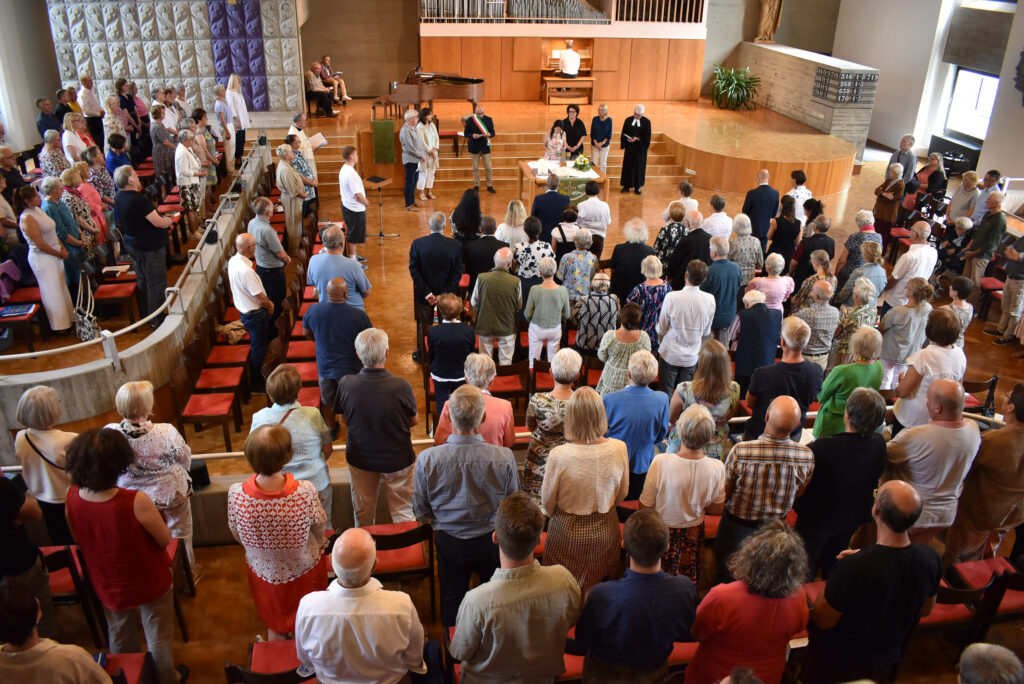 Draußen sonniges Wetter, drinnen beste Stimmung und viel Beifall für den Chor, der mit einem bunten Mix aus schönen Melodien, von Afrika bis zum Allgäu, zum guten Gelingen des Gottesdienstes beitrug. OB Hans-Jörg Henle, Mitglieder der Kirchengemeinderäte, vom Kinderfestausschuss und zahlreiche Gläubige waren gekommen, leider – es fehlten die Kinder des Kinderfestes, die so mancher vermisste. Immerhin waren einige beim Volkslauf beziehungsweise Bambini-Lauf auf der Wilhelmshöhe dabei.