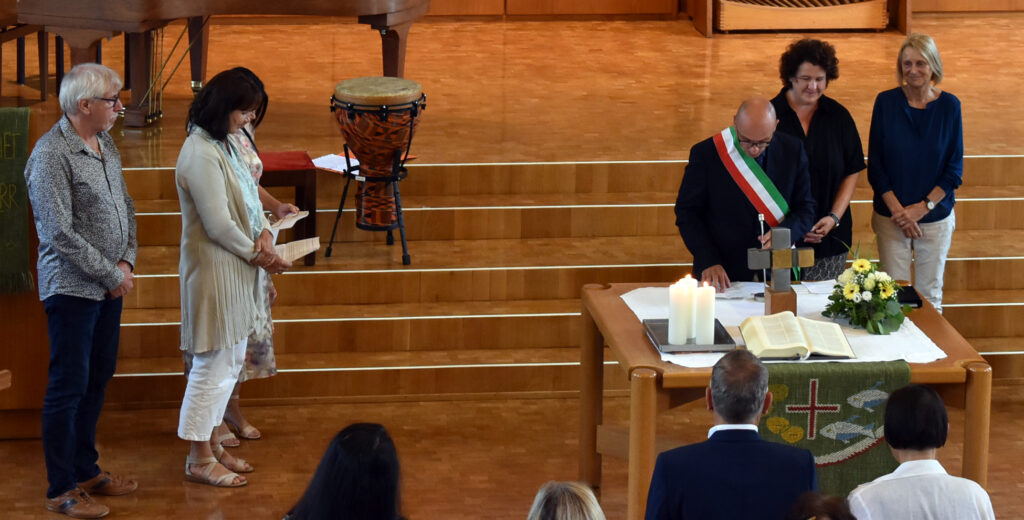 Besonders schön war es, dass die französischen und italienischen Gäste aus Leutkirchs Partnerstädten Bédarieux und Castiglione dabei waren und in ihrer Muttersprache die Fürbitten lasen. Als Lektorinnen fungierten Beate Meyer von der Evangelischen Gemeinde und Gerlinde Mast von St. Martin. In der Predigt ging es um den einen Gott, den einen Glauben, um die Gleichheit der Menschen, um Gemeinschaft und gutes Miteinander. Diesen Themen schlossen sich die Fürbitten an.