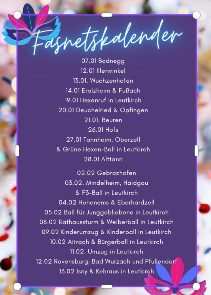 Nachstehend der Fasnetsfahrplan der Nibelgauer: