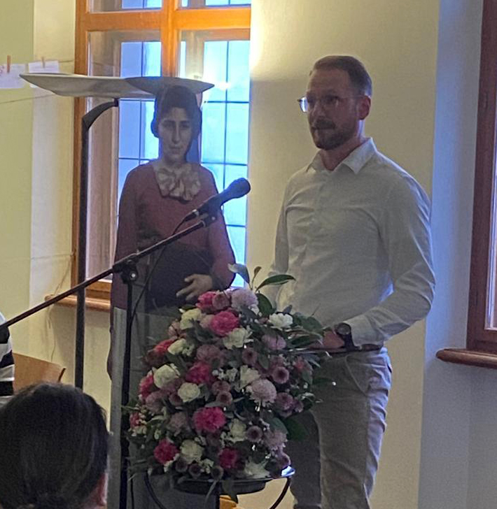 Julian Hämmerle vom Wirtschaftsbund Leutkirch erinnerte an das Kaufhaus der Familie Gollowitsch, die in der Marktstraße ein weit über Leutkirch hinaus beachtetes Bekleidungsgeschäft betrieb. „Das Kaufhaus der Familie – ein Ort des Lebens, des Handels und des Vertrauens – wurde enteignet. Was blieb, war Schweigen. Schweigen, das erst Jahrzehnte später gebrochen wurde.” Weiter sagte er: „Wenn wir heute an Lilo Gollowitsch denken, dann geht es nicht nur um Erinnerung. Es geht um Haltung – um unsere gemeinsame Verantwortung im Heute.” Das kurze Leben der Lilo Gollowitsch mahne bis heute: „Schaut hin. Mischt euch ein. Lasst nicht zu, dass Gleichgültigkeit wieder Wurzeln schlägt.” – Die Rede haben wir hier im „Leutkircher” unter Downloads hinterlegt.