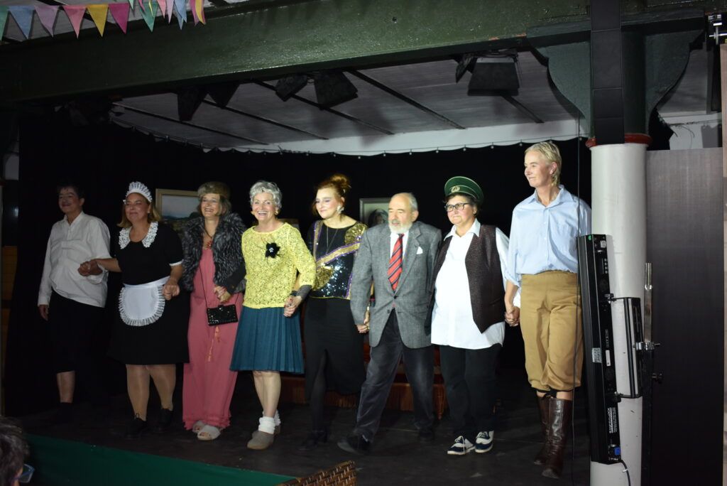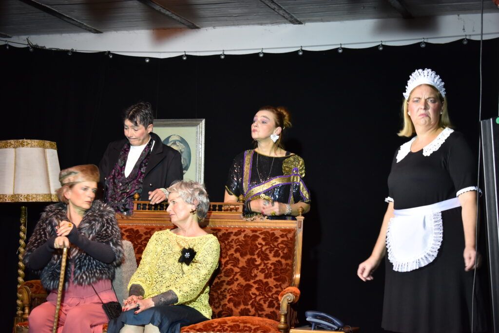 In perfekter Manier und mit adeligem Know-How ausgestattet, zeigte sich Butler Johann alias Simone Uetz. Rollenbedingt verlor der Butler immer mehr an seinem noblen Format, musste die eingeschenkten Cognacs selber austrinken, doch trotzdem kombinierte auch er das Geschehene am Hofe goldrichtig. Isabella Stumpp, im wirklichen Leben bekannt als Clowin Belina Belissimo, brillierte als Hugo Geist in der Tarnung als Kommissar-Assistent. Überhaupt gab es einige Geister und manch Geisterhaftes während den beiden Akten der Aufführung „Mörder mögen’s messerscharf“, ein Stück von Christine Steinwasser.