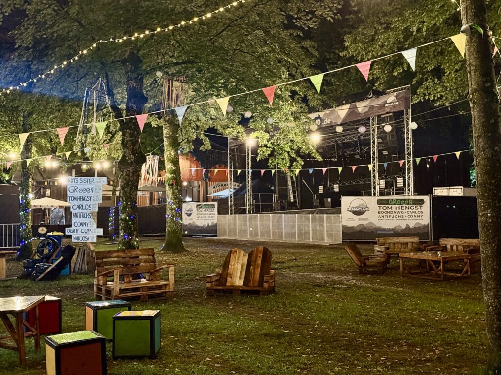 Gegen 23.00 Uhr kam der Headliner GREEEN. „Das Publikum war begeistert, machte voll mit, es war echt cool beziehungsweise auch kühl. Gegen 1.00 Uhr war inklusive der Zugaben dann Schluss.“ Schluss für die Musiker, Schluss für das Publikum. Aber nicht für die Veranstalter. „Für die Helfer ging es an den Abbau, es galt, die teure Elektronik vorsichtig zu verstauen. Gegen 4.00 Uhr war erst mal Feierabend, um 9.00 Uhr am Sonntagmorgen ging es weiter, ebenso am Montag.“