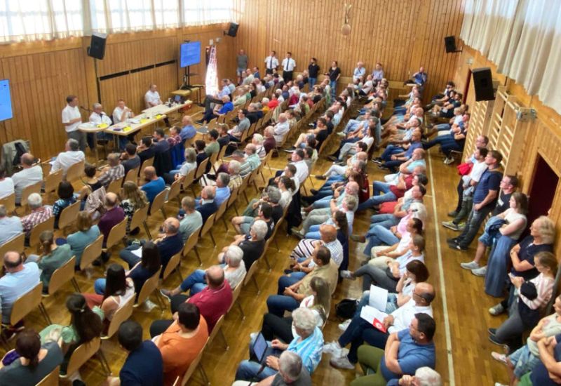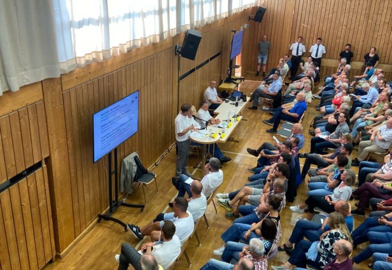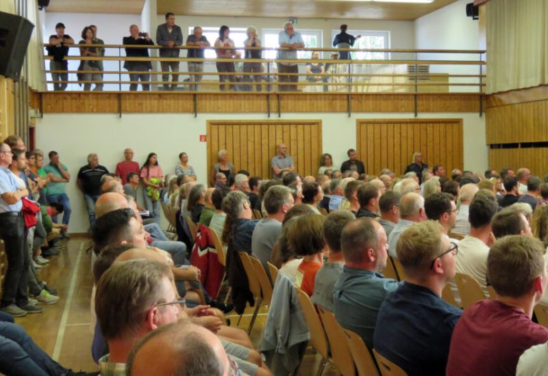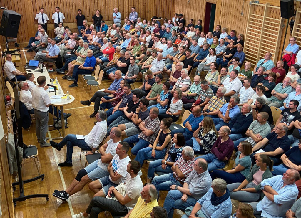 Diepoldshofen – Am vergangenen Donnerstag, 26. Juni, informierten die Stadt Leutkirch, das Landratsamt und die Firma RES in der Turn- und Festhalle Diepoldshofen über die Windkraftplanungen im Diepoldshofer Wald. Die Bildschirmzeitung „Der Leutkircher“ hat unmittelbar danach darüber berichtet, dass RES die Genehmigung von zwei Windkraftanlagen beantragt hat (https://www.diebildschirmzeitung.de/allgaeu-oberschwaben/leutkirch/res-beantragt-zwei-windkraftanlagen-im-diepoldshofer-wald-140612/). Und wir haben uns in einem Kommentar kritisch mit dem 56-minütigen Auftritt des zugeschalteten RES-Vertreters auseinandergesetzt (https://www.diebildschirmzeitung.de/allgaeu-oberschwaben/leutkirch/blamabel-140884/). Im Folgenden berichten wir über die Ausführungen der fünf Referenten. Ein weiterer Artikel folgt; darin berichten wir über die Fragen und die Beiträge aus der Zuhörerschaft im Anschluss an die Referate.