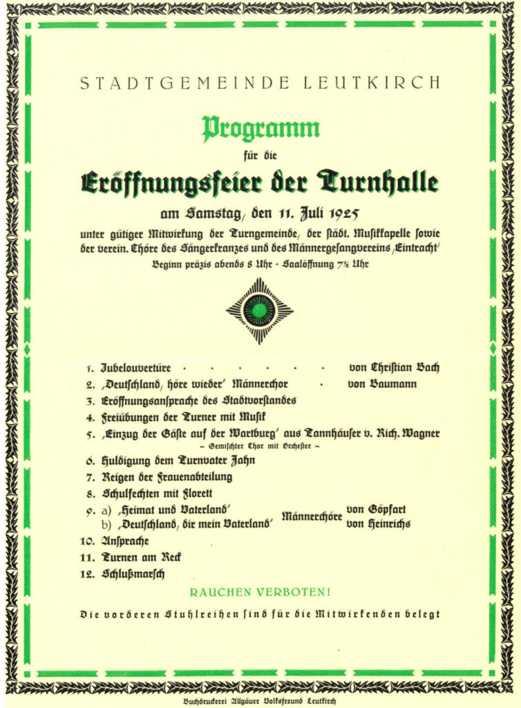 Am Samstag, den 11. Juli 1925, war es endlich soweit: Nach jahrelanger Planung und fast zweijähriger Bauzeit konnte die neu erbaute Turn- und Festhalle unter Mitwirkung verschiedener Vereine feierlich eingeweiht werden.