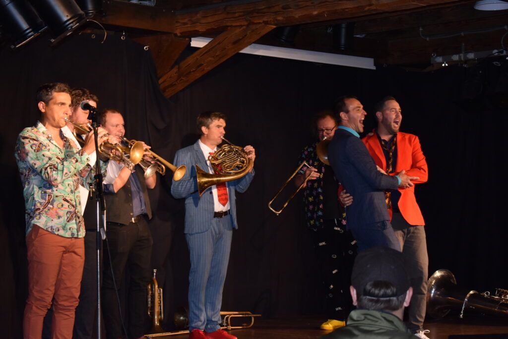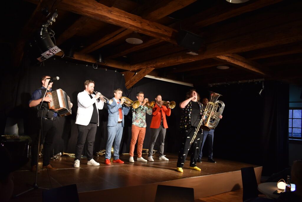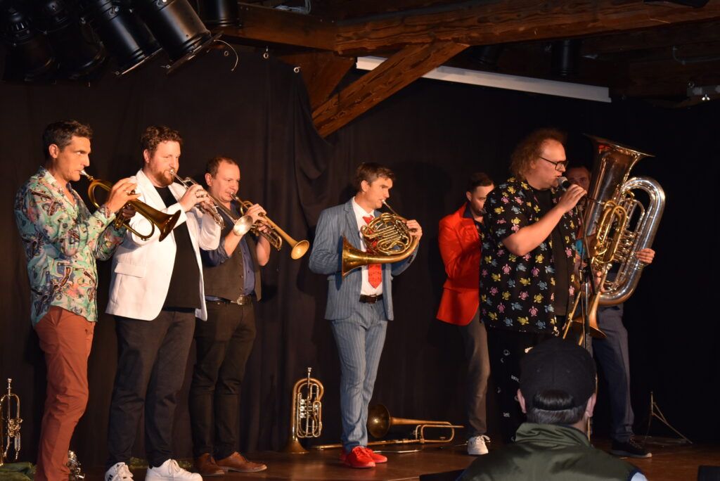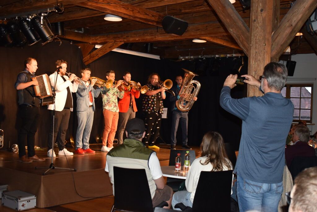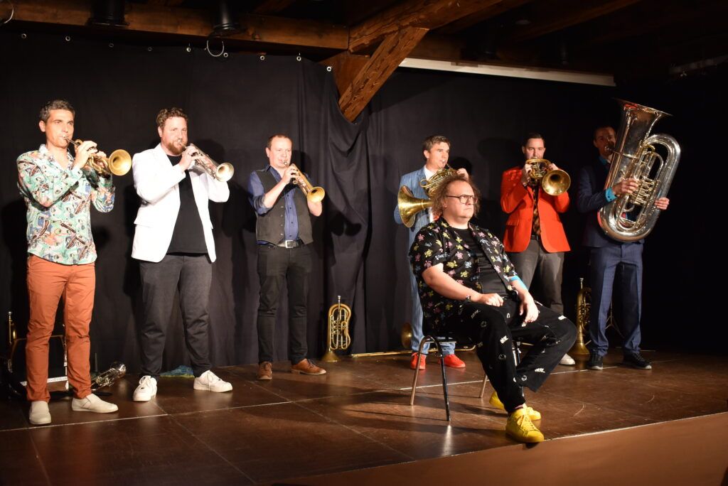 Leutkirch – Sie sind seit 14 Jahren als Band unterwegs, immer in der gleich guten Besetzung. „Verstehen Sie Brass?“, abgekürzt VSB, ist ihr Name. Allerdings ist es bei Weitem nicht nur feinste Brass-Musik, die, ausgehend von den Bergwerksarbeitern in England, lange gebraucht hat, bis sie ins Allgäu kam, das leicht schräge Ensemble VSB darbietet. Unsere Reporterin Carmen Notz hat vor kurzem ein VSB-Gastspiel im „Bock“-Saal in Leutkirch besucht. Die 80 Besucher waren hellauf begeistert.