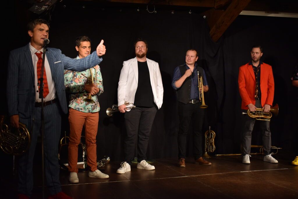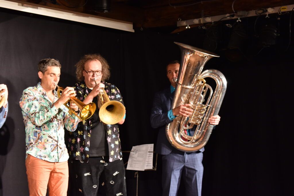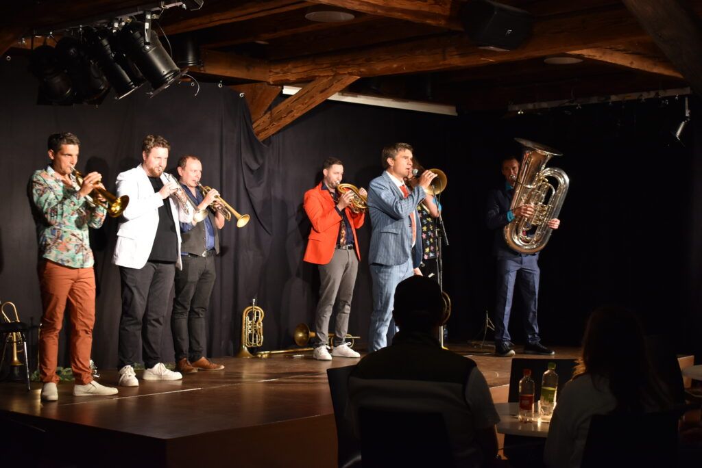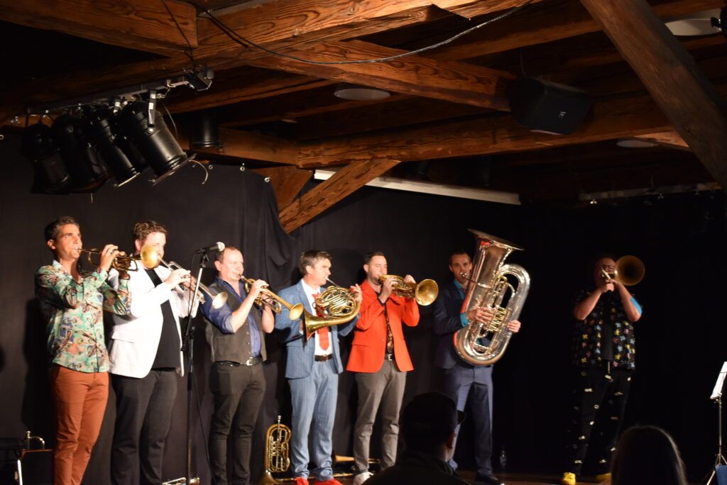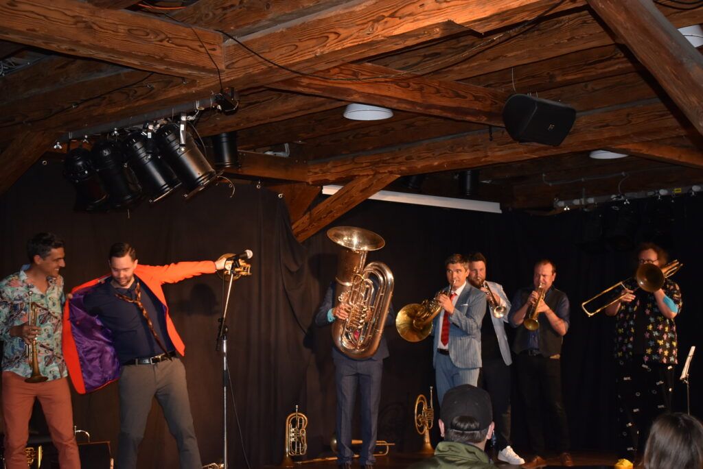 Leutkirch – Sie sind seit 14 Jahren als Band unterwegs, immer in der gleich guten Besetzung. „Verstehen Sie Brass?“, abgekürzt VSB, ist ihr Name. Allerdings ist es bei Weitem nicht nur feinste Brass-Musik, die, ausgehend von den Bergwerksarbeitern in England, lange gebraucht hat, bis sie ins Allgäu kam, das leicht schräge Ensemble VSB darbietet. Unsere Reporterin Carmen Notz hat vor kurzem ein VSB-Gastspiel im „Bock“-Saal in Leutkirch besucht. Die 80 Besucher waren hellauf begeistert.