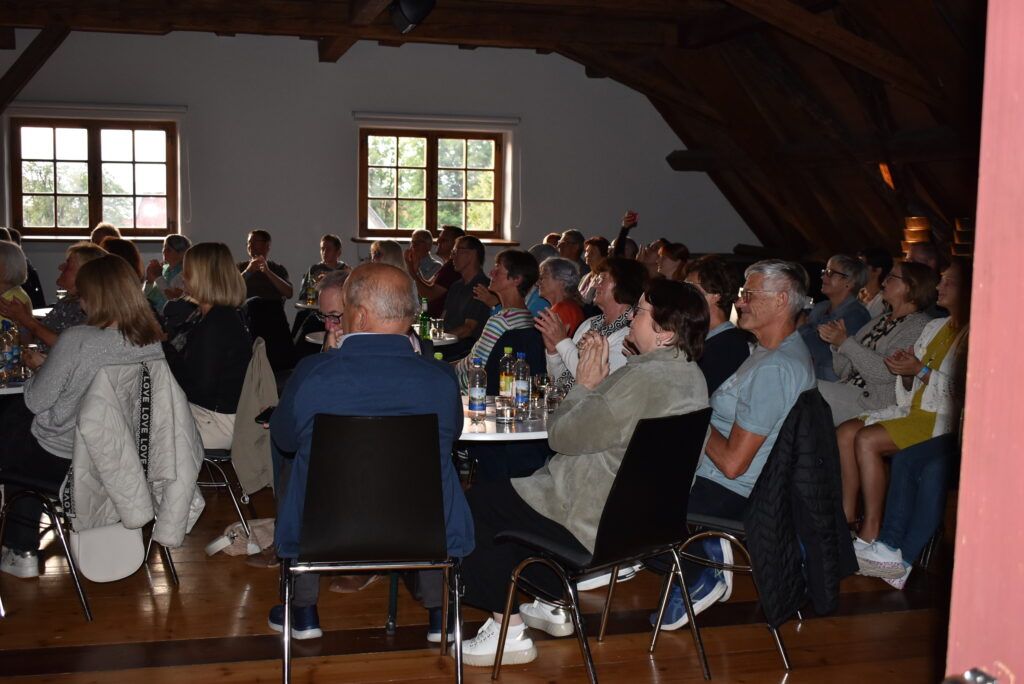 Sie erklärten endlich auch einmal, wie ihre Programme mit Musik und Komik entstehen. Da ist dieses leere Blatt Papier, also ganz ohne Handy und Computer, allerdings mit viel Gerstensaft, das beschrieben werden sollte mit neuen Ideen, Sketchen und Musik. Thomas ist Rettung I, er arrangiert engagiert, sollte eine kreative Idee auf dem Papier zustande kommen. Flo ist Rettung II, ihm fällt meist etwas ein, bei genügend Hopfensaft.