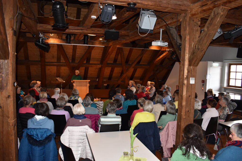 „Trotz aller Sorgen und Nöte, lasst Euch nicht bekümmern und entmutigen durch schlechte Nachrichten, macht Musik, seid fröhlich und kommt zusammen“, diese Botschaft kam auch mit der Örgeli-Musik von Gertrud Geiger rüber; Musik und Gesang verbindet Menschen, macht Freude. Stress, Hektik, Traurigkeit, Überlastung, Überforderung im Alltag, all das darf die Freude am Leben nicht vertreiben. „Die Freude lebt im Hier und Jetzt“, versicherte die Referentin glaubhaft und erklärte: „Die Freude kann man nicht festhalten, zum Beispiel sieht man das erste Schneeglöckchen im Frühling – man freut sich riesig, der Frühling kommt, aber das ist nur ein Momentgefühl. Das bleibt nicht lang erhalten.