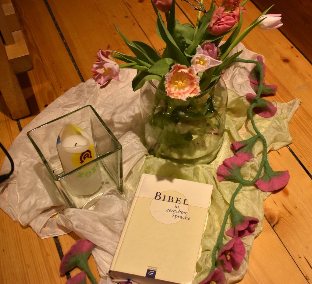 Die beiden Initiatorinnen Thea Schupp-Alders aus Unterzeil und Adelheid Rauch-Mangold aus Leutkirch luden dann zur Wort-Gottes-Feier ein, die musikalisch vom Trio Moni Heinz mit Querflöte, von Gitarristin Karin Wäckerle und Mechthild Schellhorn am Flügel umrahmt wurde. „An was erfreue ich mich, was wollte ich schon immer Schönes machen, nichts ist selbstverständlich, jeden Abend dankbar sein für den Tag, das waren einige Impulse, die zum Nachdenken und auch zum Ausfüllen einluden: Alle Besucherinnen bekamen einen Zettel, auf dem jede Frau ihre persönlichen Freuden eintragen konnte.