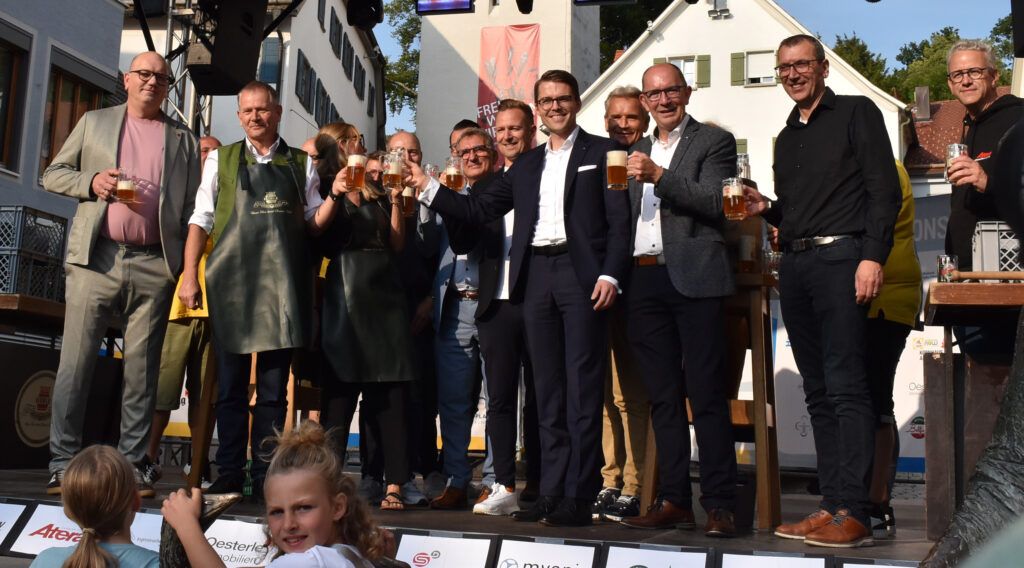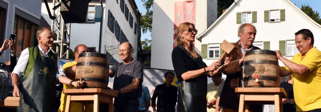 OB Henle routiniert, Sylvia Hess noch ein bisschen zögerlich: Fassbier-Anstechen zum Auftakt des ALSO.