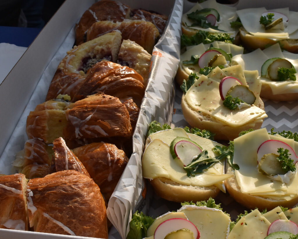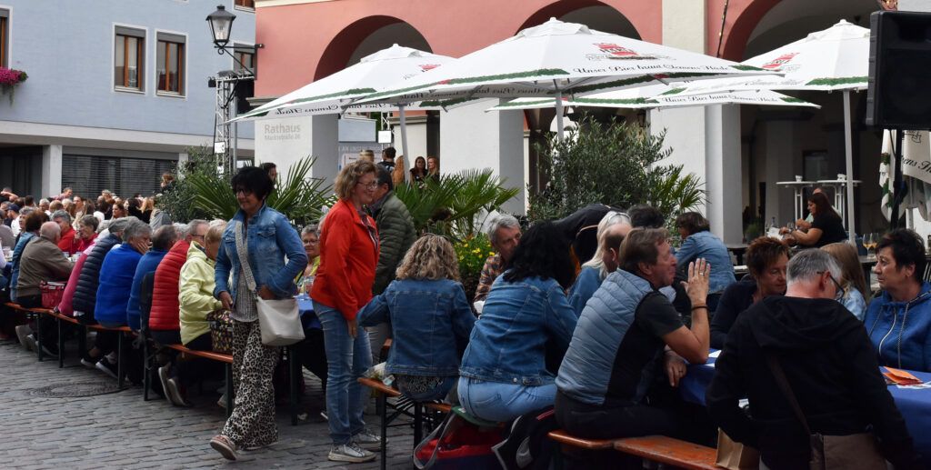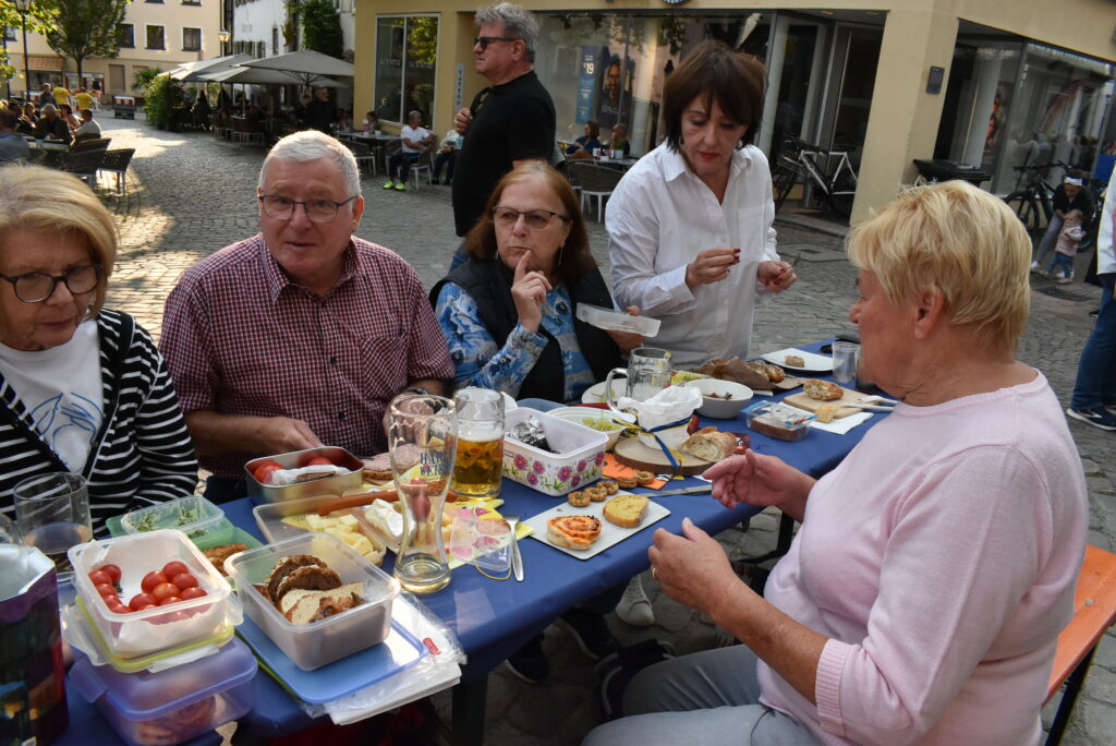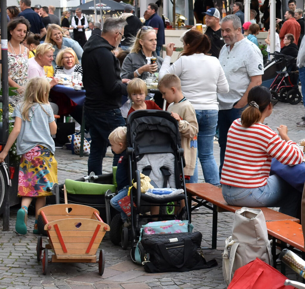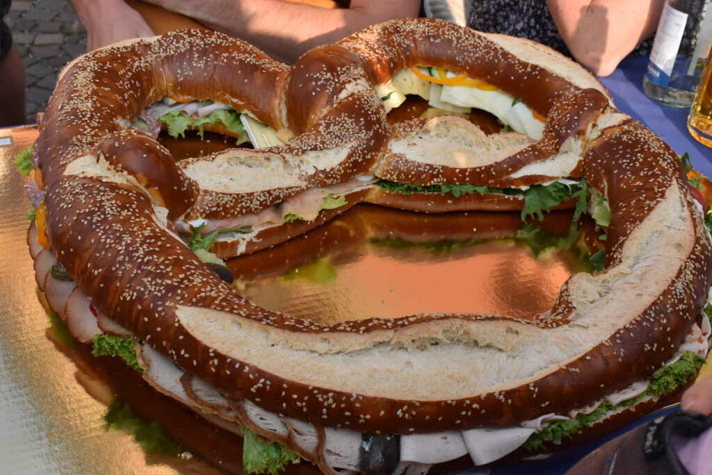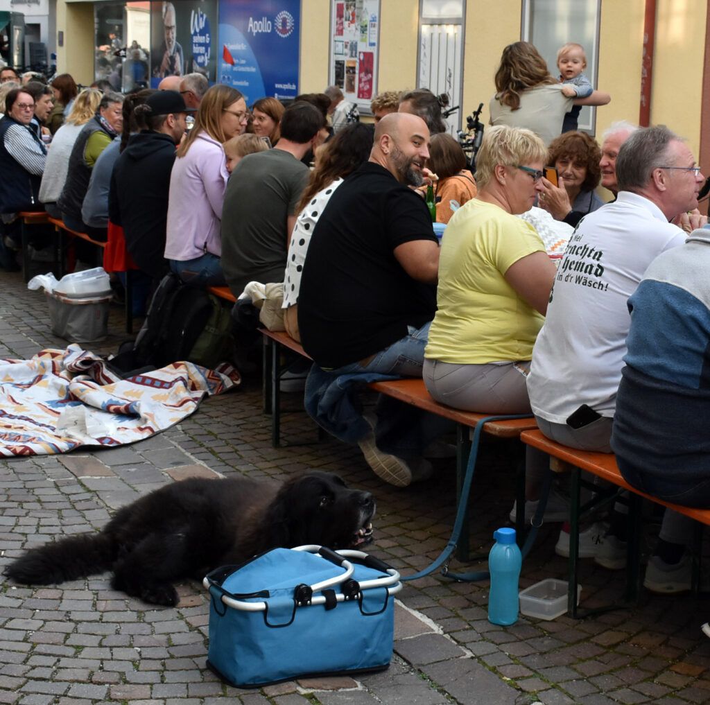 Jede/r konnte sein eigenes Vesper mitbringen. Da gab es leckere Brotaufstriche, verschiedene Salate, Wurst- und Käsevariationen, man sah Riesen-Laugenbrezeln, belegte Seelen und Gebäck von Bäckereien, pikant oder süß. Alle Gaststätten waren voll besetzt, an der Vespertafel alle Plätze belegt und alle Sitzmöglichkeiten in der Altstadt besetzt. Am Gänsbühl fand der Fassbier-/Freibier-Anstich statt.