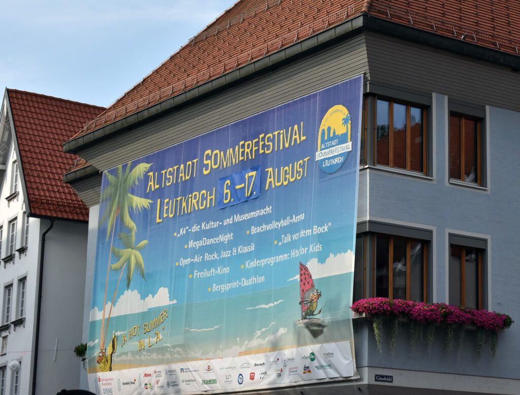Sylvia Hess fand viele lobende und dankende Worte, besonders für die zahlreichen Sponsoren, die neuen und die alten, die treuen. „Endlich Sonnenschein, genau pünktlich, wie bestellt zu unserem Altstadt-Sommerfestival, und es soll sonnig und warm bleiben – Herzlichen Willkommen in Leutkirch!“ Die einzigen Wolken am Himmel waren die gebastelten und aufgehängten Wolken aus Käse-Papier in der Marktstraße.