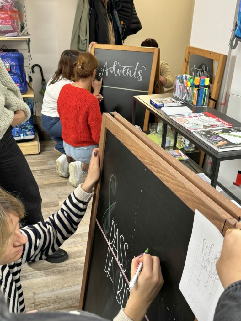 Geleitet wurden die Workshops von der erfahrenen Grafikerin Iris Espunkt, die den Teilnehmern die Kunst des Handletterings näherbrachte. Mit ihrer Unterstützung übten die Unternehmer das kreative Gestalten von Schriftzügen, insbesondere für Kreidetafeln, Papier und Postkarten.