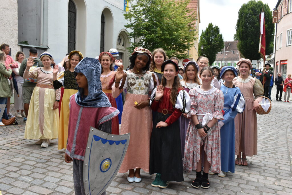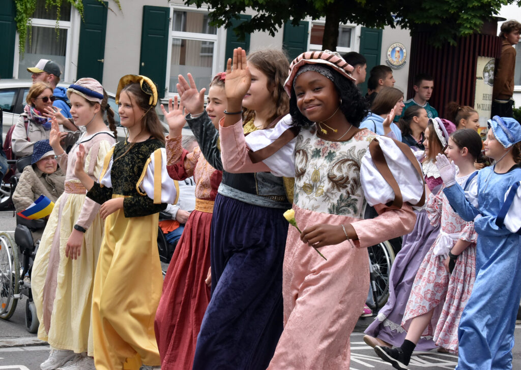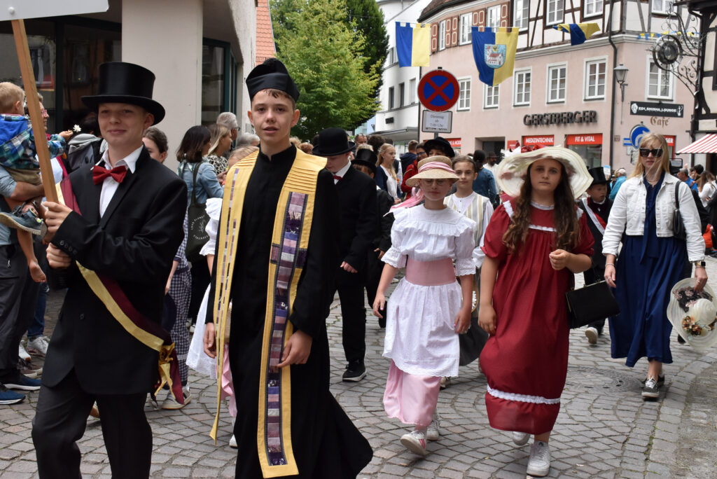 Historischer Festzug am Leutkircher Kinderfest von der Sonne begleitet