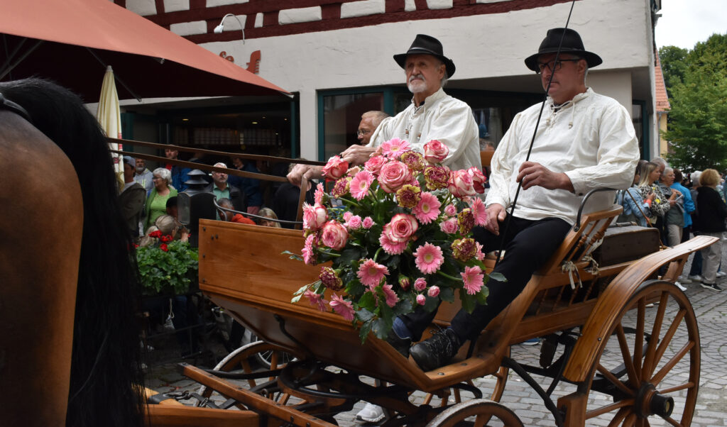 Leutkirch – Am Abend vorher noch Regen, Kälte und unangenehmer Wind, doch am Dienstagmorgen (22.7.) ab 6.00 Uhr regt sich schon was im Städtle bzw. beim Schulzentrum, wo die Festwagen hergerichtet werden. Viel Grün und Blumenschmuck werden angebracht, Pferde im Festtags-Geschirr werden eingespannt. Zahlreiche Schülergruppen machen sich in ihren jeweiligen historischen Festgewändern bereit, aus Stadt und Land strömen sie herbei – froh herbei – wie es im Leutkircher Kinderfestlied heißt! Als Festzug-Kommentator amtete vor dem Rathaus Karl-Anton Maucher – kenntnisreich und zugewandt. Mit derselben Empathie und Kompetenz beschrieb Michael Weinmann am “Mohren” die Gruppen.