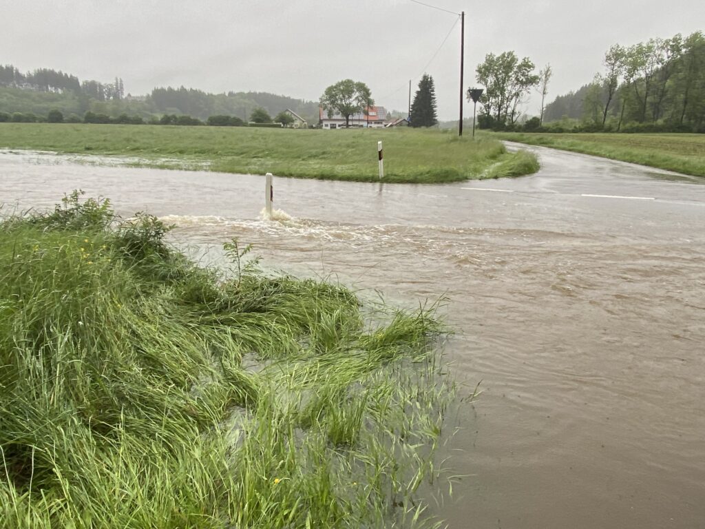 1. Juni gegen 9.00 Uhr in Rotis: Die Straße nach Hofs ist gesperrt.