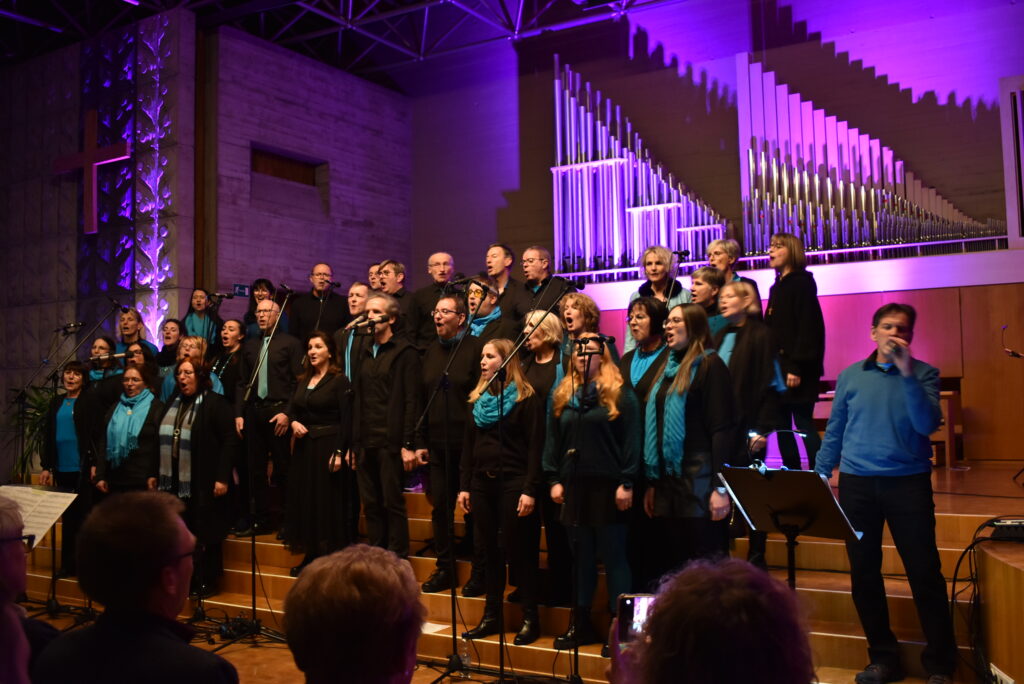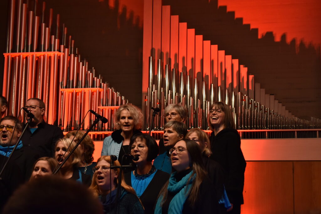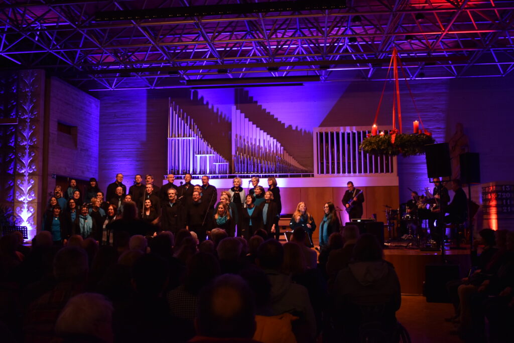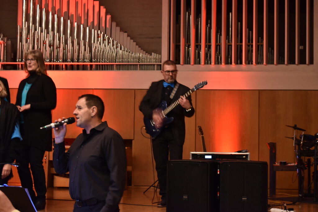 „Gänsehaut auf dem Trommelfell“ – sowas hört man nicht oft von Moderatoren, doch so sollte es ja sein, wenn der Gospelchor die zarten, feinen Töne anstimmt wie bei „Savior“, der Retter der Welt ist geboren, wunderbar intoniert von den langjährigen Solisten Andrea Baumgärtner und Klaus Bodenmüller.