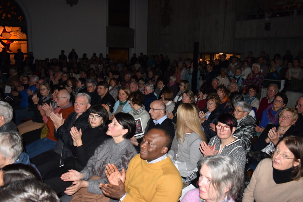 „Vor fünf Jahren, auf den Tag genau, sind wir zum letzten Mal hier in der Evangelischen Kirche in Leutkirch aufgetreten. Dann gab es eine lange Pause, und wir dachten schon, die Leutkircher hätten uns vielleicht vergessen und nun ist die Kirche doch sooo voll geworden. Herzlichen Dank für ihr Kommen“, freute sich nicht nur Chor-Vorstand Peter Litzbarski über den großen Publikumsandrang. Alle Anwesenden staunten nur so über die vielen Gäste, unten und auf der Empore, wie eingerahmt vom stehenden Publikum. Auch Rudi Patzelt vom Kirchengemeinderat war sehr angetan bei seiner Begrüßung, und es passe bestens zum 3. Advent: Gaudete – Freuet Euch!