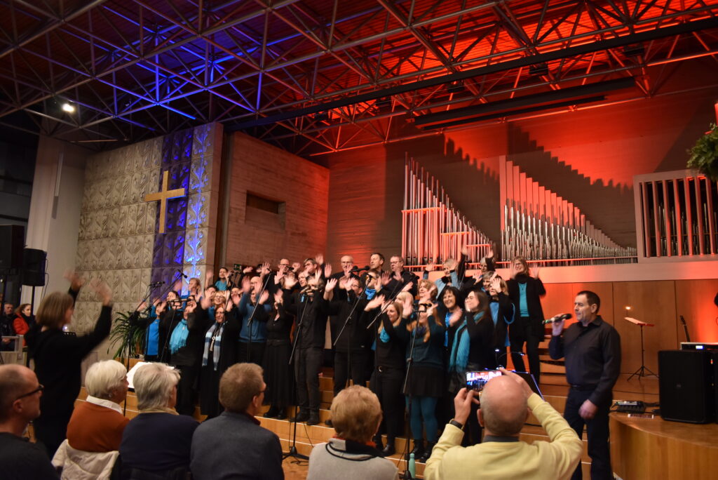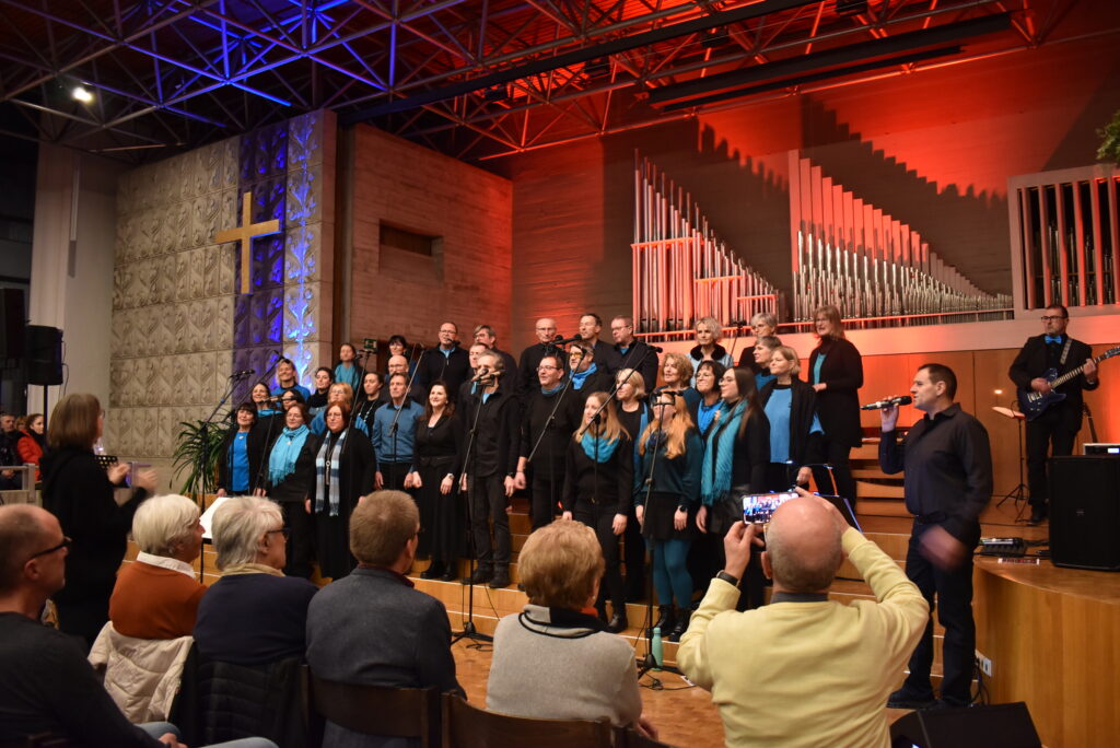 „Die gute Nachricht“, das heißt Gospel übersetzt, und die kam exzellent und locker-leicht-beschwingt rüber, mit neuen und bekannten Liedern, mit dem „Ruf nach Freiheit“ der damaligen Sklaven beim Stück „Freedom“, mit dem christlichen „Holy holy“ oder dem weltlichen Weihnachtslied „Happy X-mas“ mit leichtem Schunkel-Rhythmus. Ein Highlight für alle war zum Abschluss „Stille Nacht“, auch wenn sie erst noch kommt. Neben Solisten und der Band durfte auch das Publikum mitsingen.