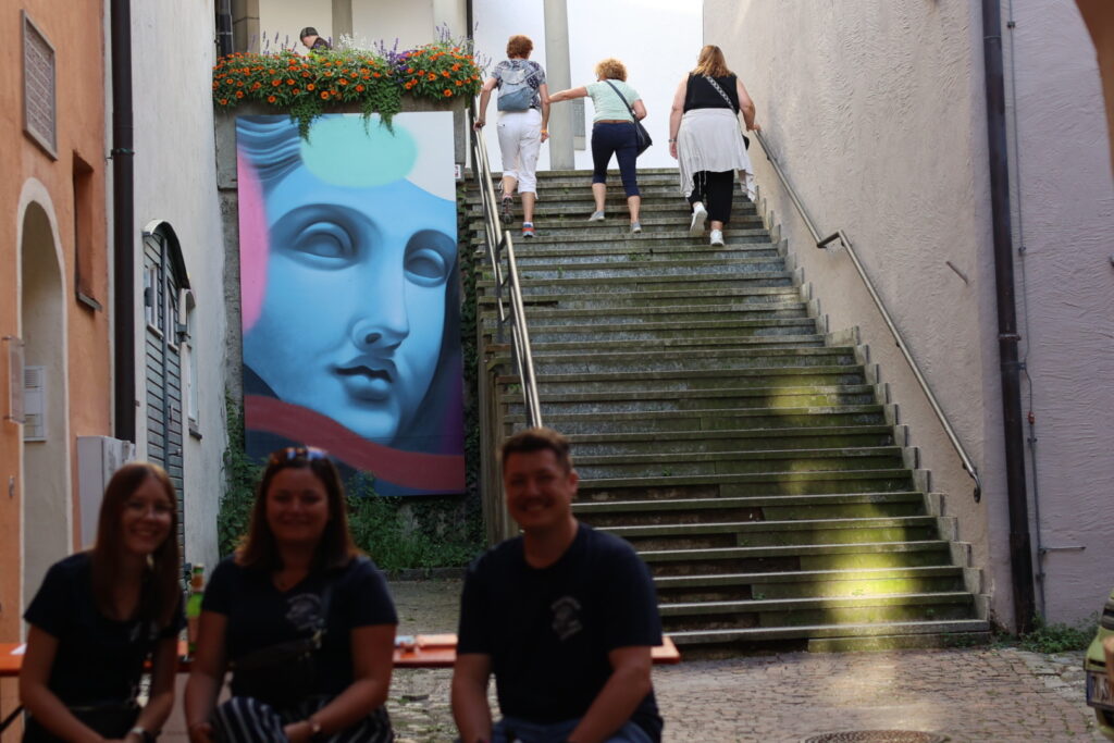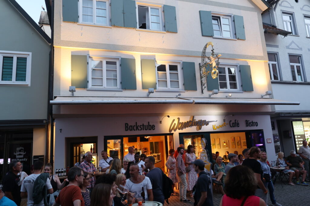 Leutkirch – Ein wunderbarer Sommerabend. Die diesjährige K4-Nacht war im Wetterglück. Unser Reporter Hans Reichert war mit der Kamera in Straßen und Gassen der Leutkircher Altstadt unterwegs und fing Impressionen der 4 K ein, die da heißen: Kunst-, Kultur-, Kommerz- und Kneipe.