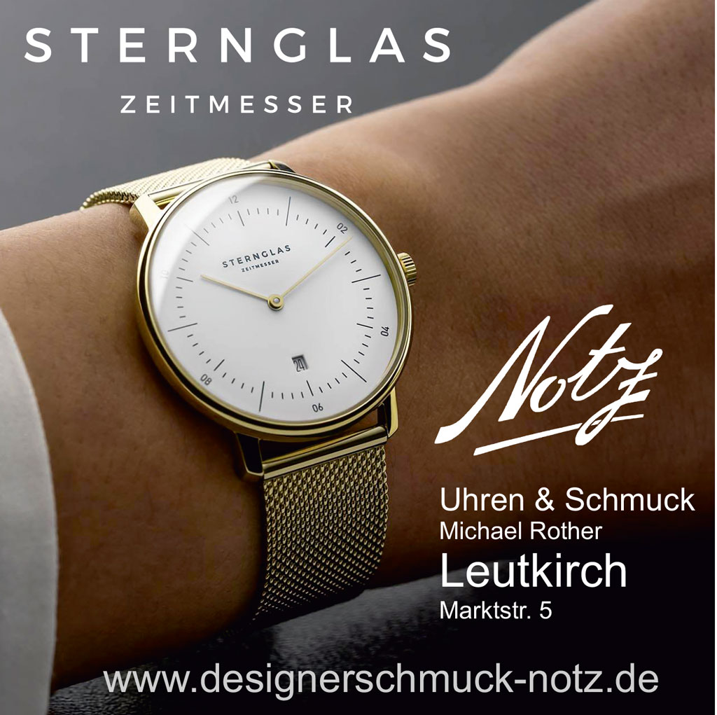 Zum Beispiel „Notz Uhren und Schmuck” an der Marktstraße 5. Schon seit 1872. Geschäftsführer Michael Rother leitet „Notz Uhren und Schmuck” bereits in der fünften Generation. Michael Rother schildert „Notz Uhren und Schmuck” als „Traditionsgeschäft in der Leutkircher Altstadt – für individuelle Schmuckstücke und Uhren, die sich deutlich aus der uniformen Masse des weithin üblichen Angebotes abheben.” Gerne stattet Notz seine Kundschaft in den großzügigen Geschäftsräumen mit „trendigem Schmuck und modischen Uhren vieler bekannter Marken“ aus. Notz-Geschäftsführer Michael Rother weiter: „Die individuellen, handgefertigten Schmuckstücke stammen aus deutschen oder europäischen Manufakturen, teilweise sind es sogar Einzelanfertigungen. Dieser individuelle Schmuck ist es, mit dem wir uns abheben möchten. Nicht nur stationär, sondern auch online können sich unsere Kunden über unser Schmuckangebot informieren.