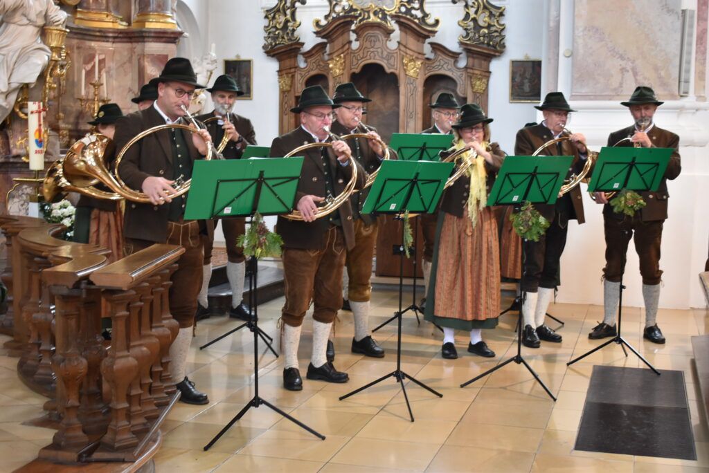 Leutkirch / Maria Steinbach – Die Sonntagsmesse vom 5. November wurde in Maria Steinbach als Hubertusmesse gefeiert. Eine Jagdhornbläsergruppe aus dem Raum Leutkirch bereicherte den Gottesdienst mit wundervollem Klang. Die Akustik in der reich geschmückten und hohen Kirche von Maria Steinbach war überwältigend.